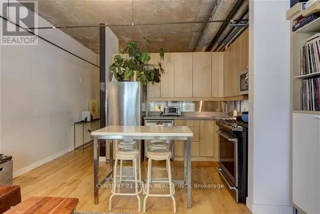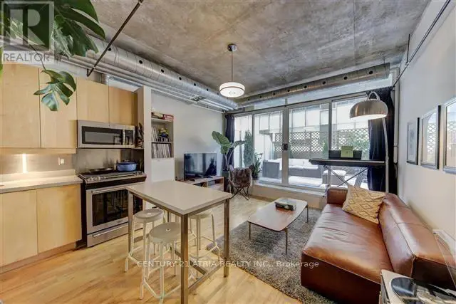 Welcome to The Stewart Lofts, a mature boutique King West building known for its rare soft-loft character and unbeatable location. This eight-storey, 46-unit low-rise is one of the most desirable loft residences in downtown Toronto, offering a quiet, design-forward living experience steps from King St West's best restaurants, cafés, nightlife, fitness studios, and the Financial District. Unit 202 delivers true loft living with 10 ft exposed concrete ceilings, floor-to-ceiling windows, hardwood floors, and a functional open layout flooded with natural light. The updated kitchen features new stainless steel appliances, a gas range, quartz countertop, and ample storage. A standout highlight is the massive 225 sq ft private terrace, perfect for entertaining, relaxing, and outdoor dining-complete with a rare gas BBQ line and additional storage space. This suite also includes in-suite laundry, efficient climate control, and a clean, move-in-ready interior ideal for urban professionals. Enjoy unmatched walkability with access to streetcars, shopping, parks, the Waterfront, entertainment venues, and major business hubs. The boutique nature of the building ensures privacy, exclusivity, and a unique lifestyle not found in larger condo towers. A must-see opportunity for those seeking style, character, convenience, and premium downtown living.