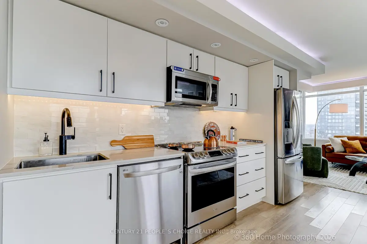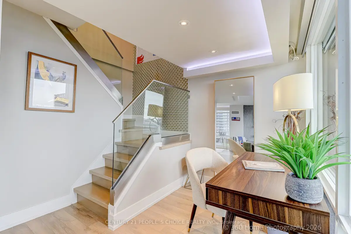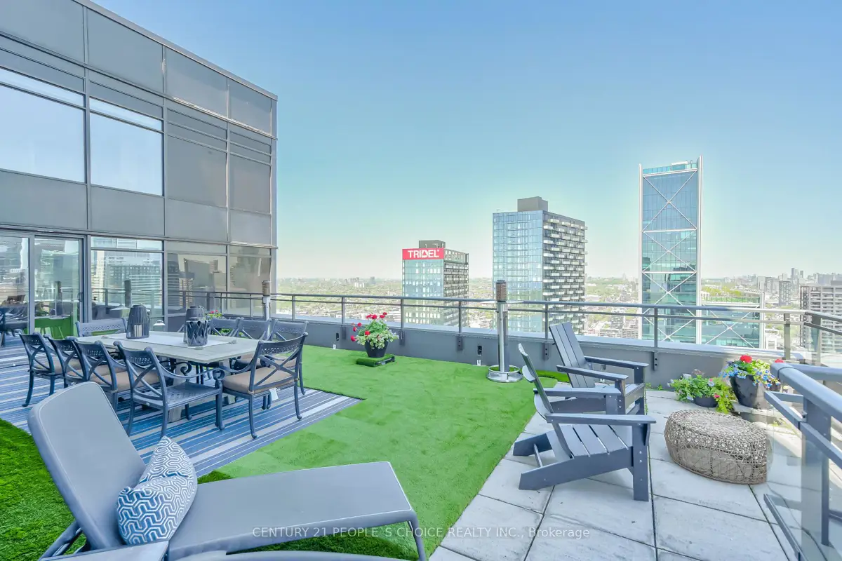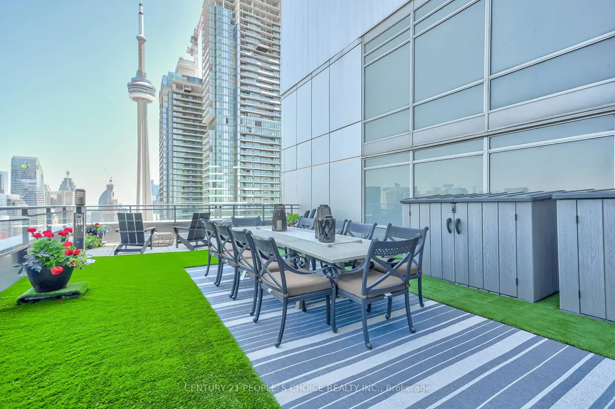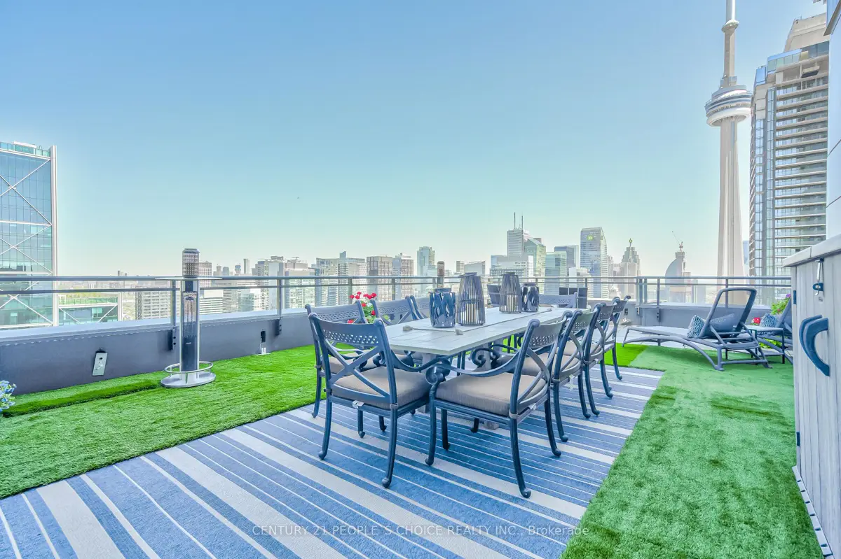 Waterfront Two- Storey Penthouse with Unmatched Private Terrace City skyline views at 25 Telegram Mews, offering breathtaking skyline views and a spectacular 777 sqft TRUE terrace designed for entertaining or enjoying stunning sunsets over Lake Ontario. Positioned just steps from the vibrant Harbourfront, this residence provides easy access to Queens Quay boat slips and the marina, perfect for those who love to set sail or enjoy the waterfront lifestyle. Includes 2 side-by-side parking + 1 locker. Meticulously rebuilt condo boasts luxurious Calcutta quartz counters, full-size stainless steel appliances, and stylish glass staircase leading to the upper level. Both primary bedrooms feature elegant ensuite baths with rainfall showers, while two additional balconies offer the ideal spots for morning coffee with a view. The suite is outfitted with ambient ceiling lighting, fully automated blinds, and refined pot lights, creating an atmosphere of sophistication and comfort. The building itself is a statement of exclusivity, featuring a private high-rise lobby with contemporary updates, three dedicated express elevators, and 24-hour security with fob-access to each floor. Residents enjoy exceptional amenities, including a full size heated saltwater indoor pool, a luxurious 10-person hot tub, and direct access to the onsite Sobeys grocery store. Additionally, the underground parking offers both paid and free guest spaces, while this unit includes two side-by-side parking spots next to a locker for added convenience. Just across the street, Canoe Landing Public & Catholic School (JK-Grade 8) and the recreation center offer excellent community access. With the Spadina streetcar connecting directly to Union Station and the UP Express to Pearson Airport, commuting couldn't be easier. Plus, the Gardiner Expressways westbound entrance off of Spadina is right at your doorstep. Experience the perfect blend of luxury, convenience, and waterfront access in this stunning penthouse