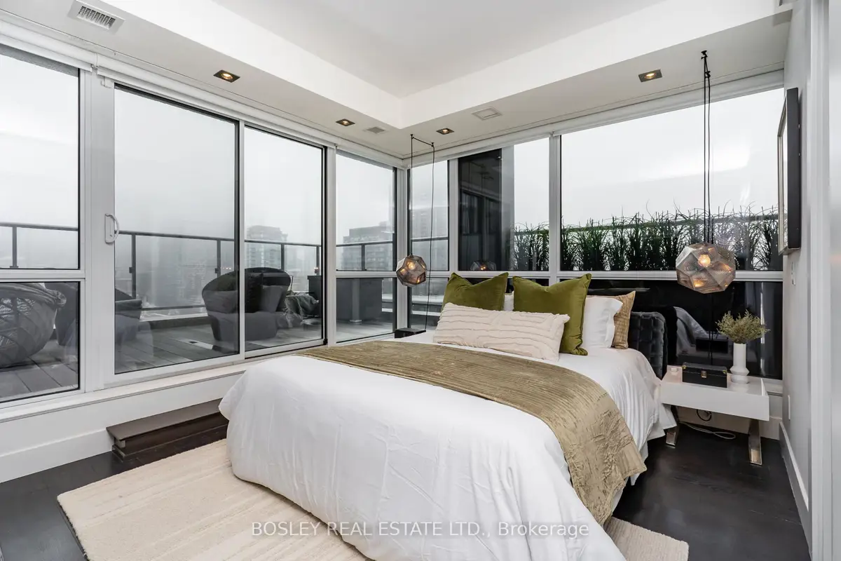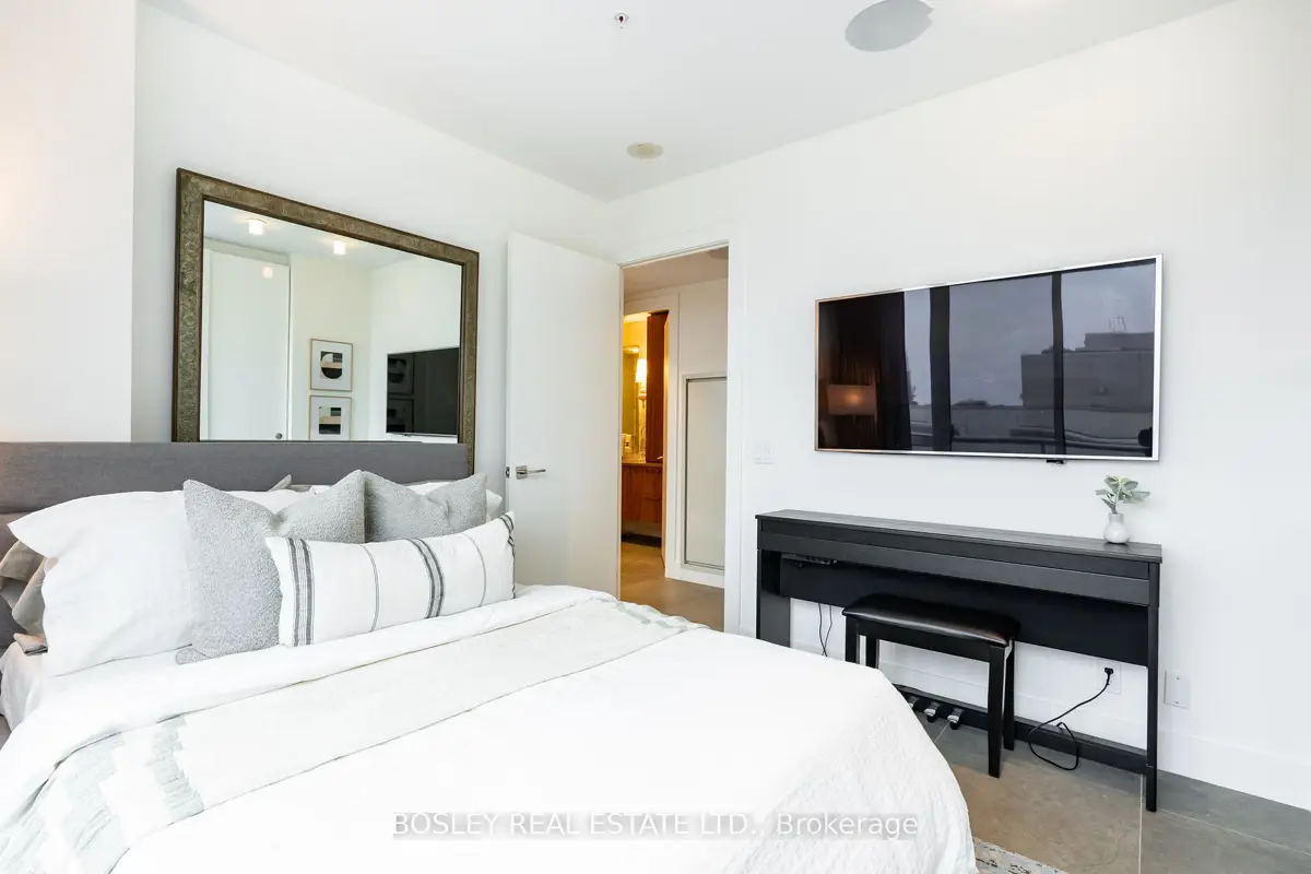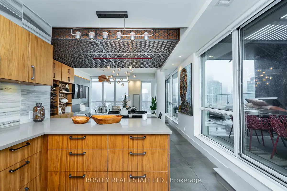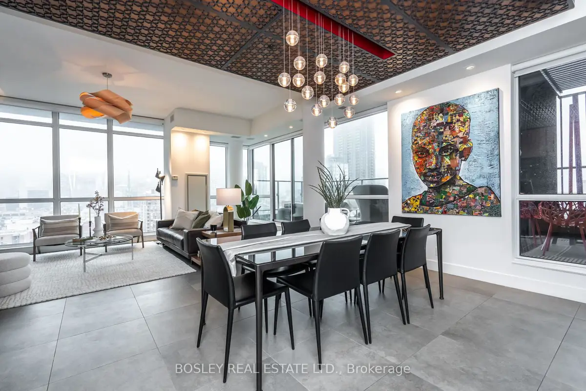 In a city full of cookie-cutter condos, this residence stands apart - an example of architecture applied to everyday living. Welcome to PH1606 at Kings + Condos, a custom-designed two-level urban residence offering nearly 2,000 sq ft of interior living space plus two private terraces and 2 balconies. This home blends architectural design, intelligent technology, and elevated comfort. The interior was custom designed in collaboration with Wanda Ely Architects and features bespoke millwork in the dining room, a custom media wall with Ecosmart fireplace, and exceptional storage including custom dressing spaces, a dedicated walk-in wardrobe, and built-in jewelry and shoe cabinetry. A fully integrated Savant smart home system powers distributed audio throughout the residence, including bathrooms and the lower terrace, while controlling televisions and lighting seamlessly throughout the home. The kitchen is designed for both everyday living and entertaining, featuring an enlarged refrigerator, 5-burner cooktop, and a full walk-in pantry. A rare full laundry room with oversized sink adds an additional layer of functionality seldom found in downtown residences. Outdoor living has been elevated through two professionally designed terraces by Earth Inc.. The lower terrace features custom stone flooring, lighting, gas and water connections, and wired sound. The upper terrace offers custom wood flooring and a gas-line firepit - creating true outdoor rooms rather than typical condo balconies. Each room features its own thermostat for personalized heating and cooling, and the suite includes a private A/C unit independent from the building, allowing cooling year-round. Perfectly positioned for urban convenience with quick access to both the Gardiner Expressway and Don Valley Parkway. Walk to groceries, shopping, and some of the city's best dining. This residence isn't just about space, it's about living an elevated lifestyle in the heart of Toronto.