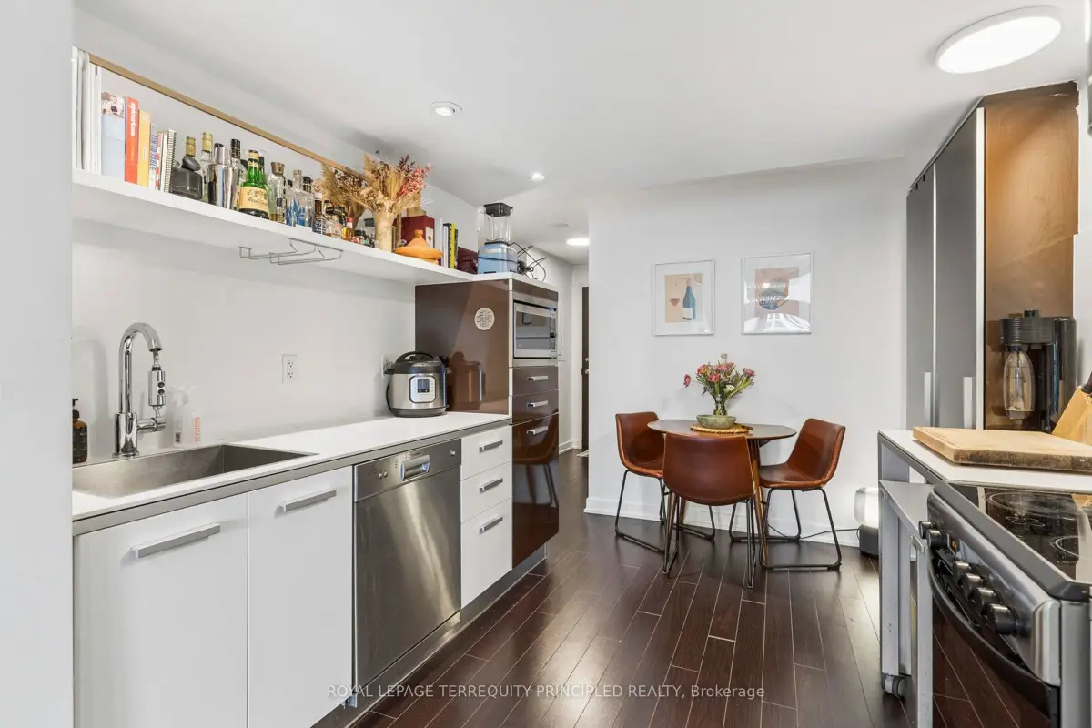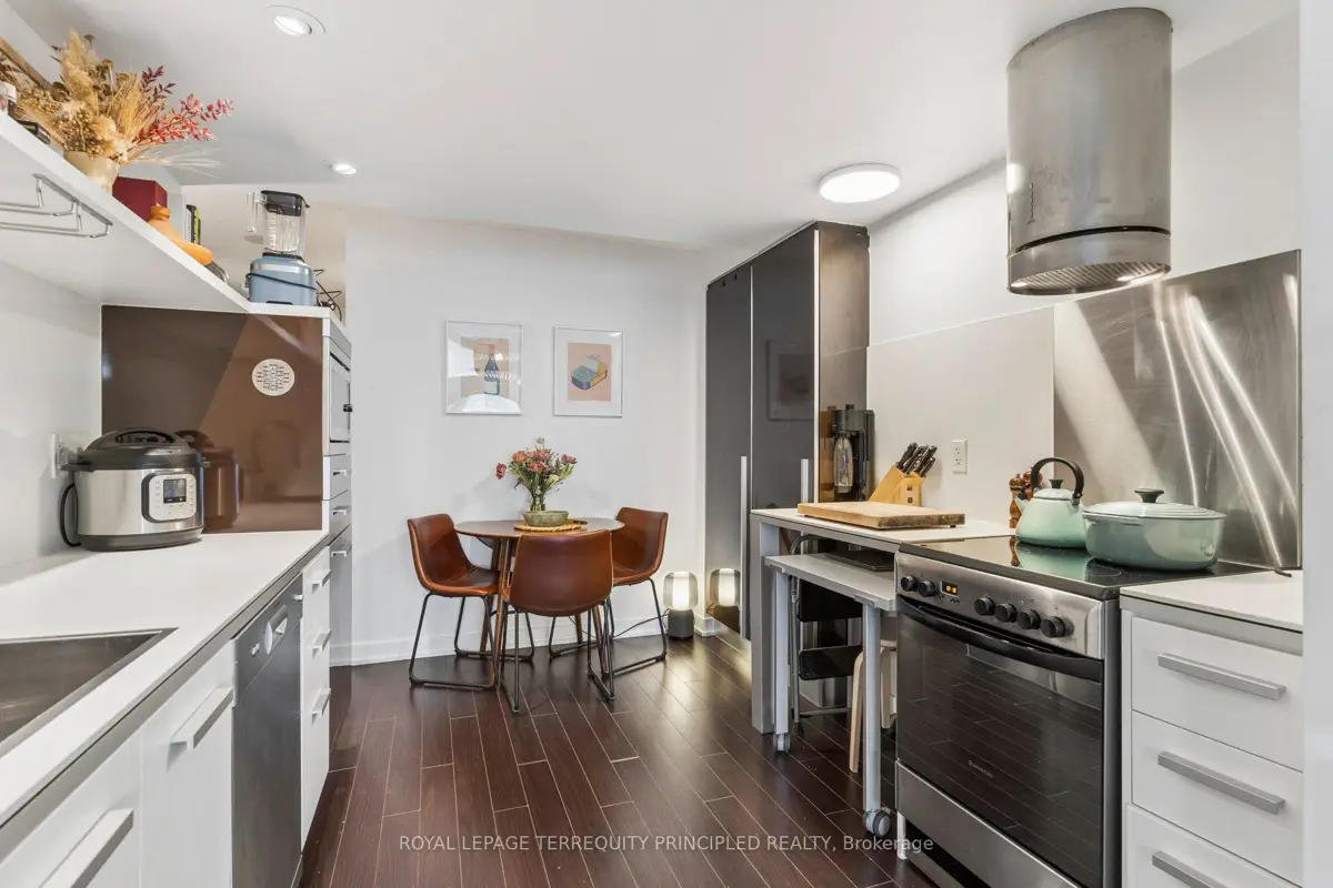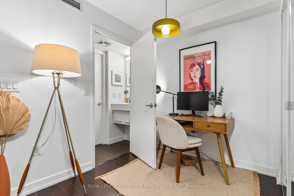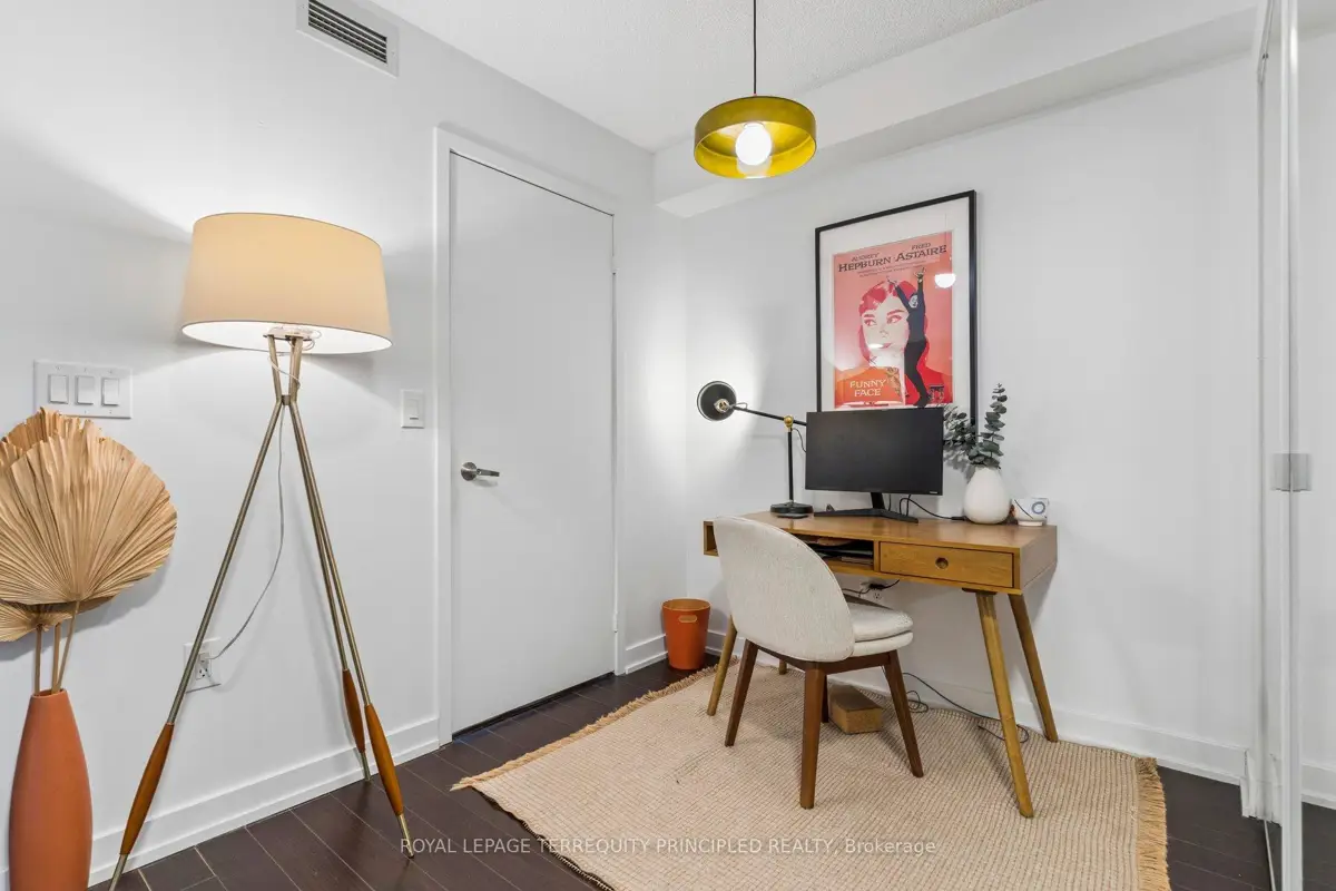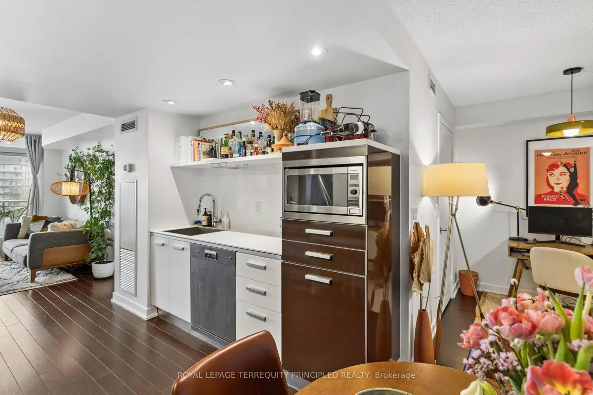 Located in a young, vibrant, downtown community, this 1+den condo is the perfect mix of function and location. Located next to Canoe Landing Park and across the street from the flagship Loblaws, everything you need is within walking distance. Stroll down the street to watch the Blue Jays, or stop for a drink at multiple bars and restaurants along the way. Prefer to be part of the action? Join in a soccer game on the turf pitch at Canoe Landing, or head barely minutes south for a pleasant walk along the waterfront. Large balcony with sunny lake views for a tranquil evening with a book or with a friend. Work from home? No problem with the den, or the included fold away desk in the bedroom. Have extra stuff? Unit comes with a locker too. Well run building with some of the lowest maintenance fees in the area. Amenities include lots of common outdoor space with BBQs, outdoor hot tub, bike storage, gym and that all-important concierge to receive those packages. Great location, functional design and your next home at Panaroma condos!