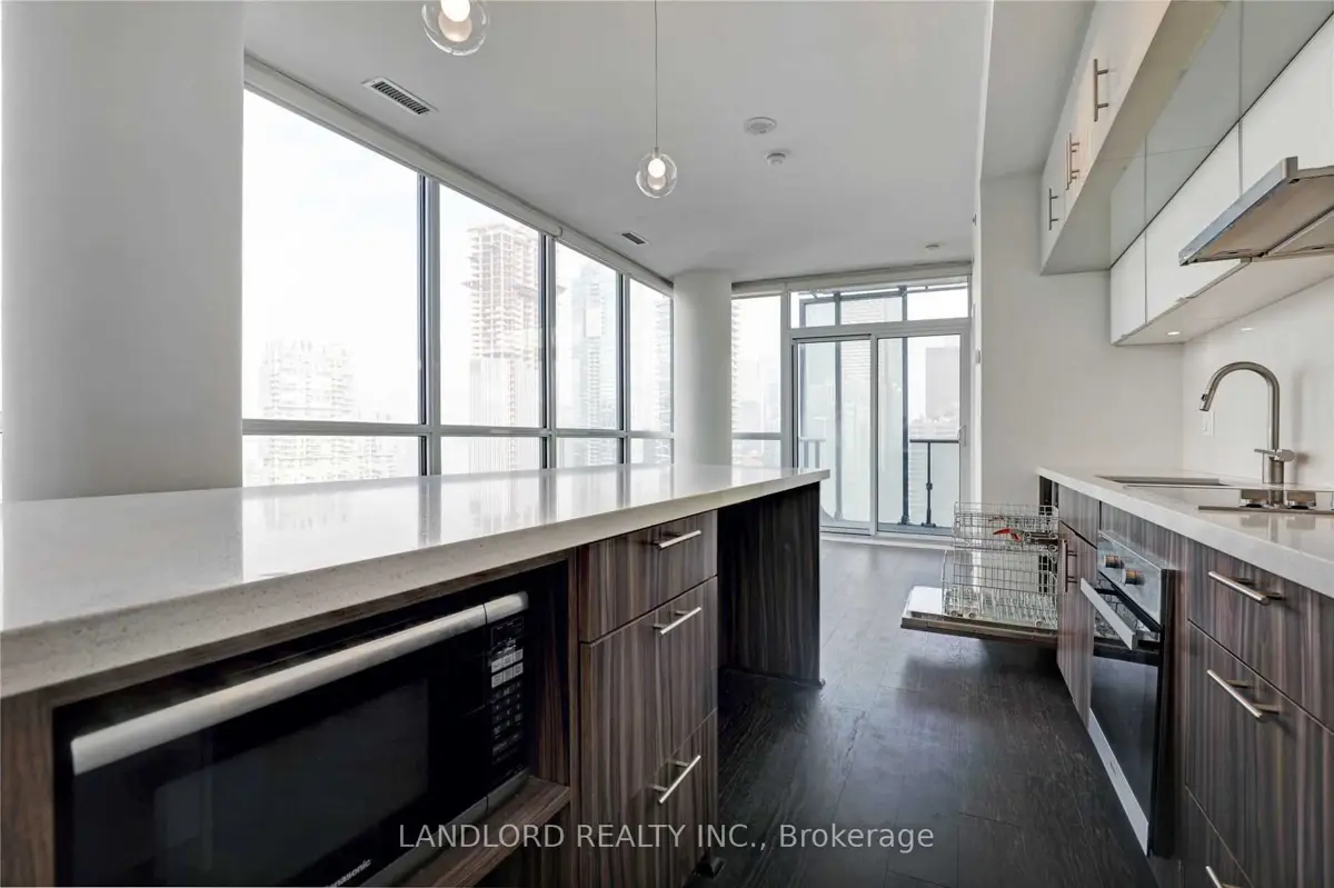 Enjoy Carefree Living In This Stunning Corner 2bed/2bath Suite! Offering Fantastic Downtown Views From Two Private Balconies And Panoramic Floor-To-Ceiling Windows In The Open Living Room. The Modern Kitchen Features A Breakfast Bar, Built-In Appliances, And Ample Storage. The Primary Bedroom Includes A 3pc Ensuite And Walk-Out To Balcony. The Second Bedroom Offers Flexibility, Making It An Ideal Space For A Home Office Or A Comfortable Guest Room. The Location Is Excellent, Near King West, The Financial District, Queen St. W, And Public Transportation. Enjoy The City's Best Dining, Shopping, And Nightlife Within Walking Distance. A Must See! **Appliances: Fridge, Stove, B/I Microwave, Dishwasher, Washer and Dryer **Utilities: Water and Heat Included, Hydro Extra **Parking: 1 Spot Included **Locker: 1 Locker Included