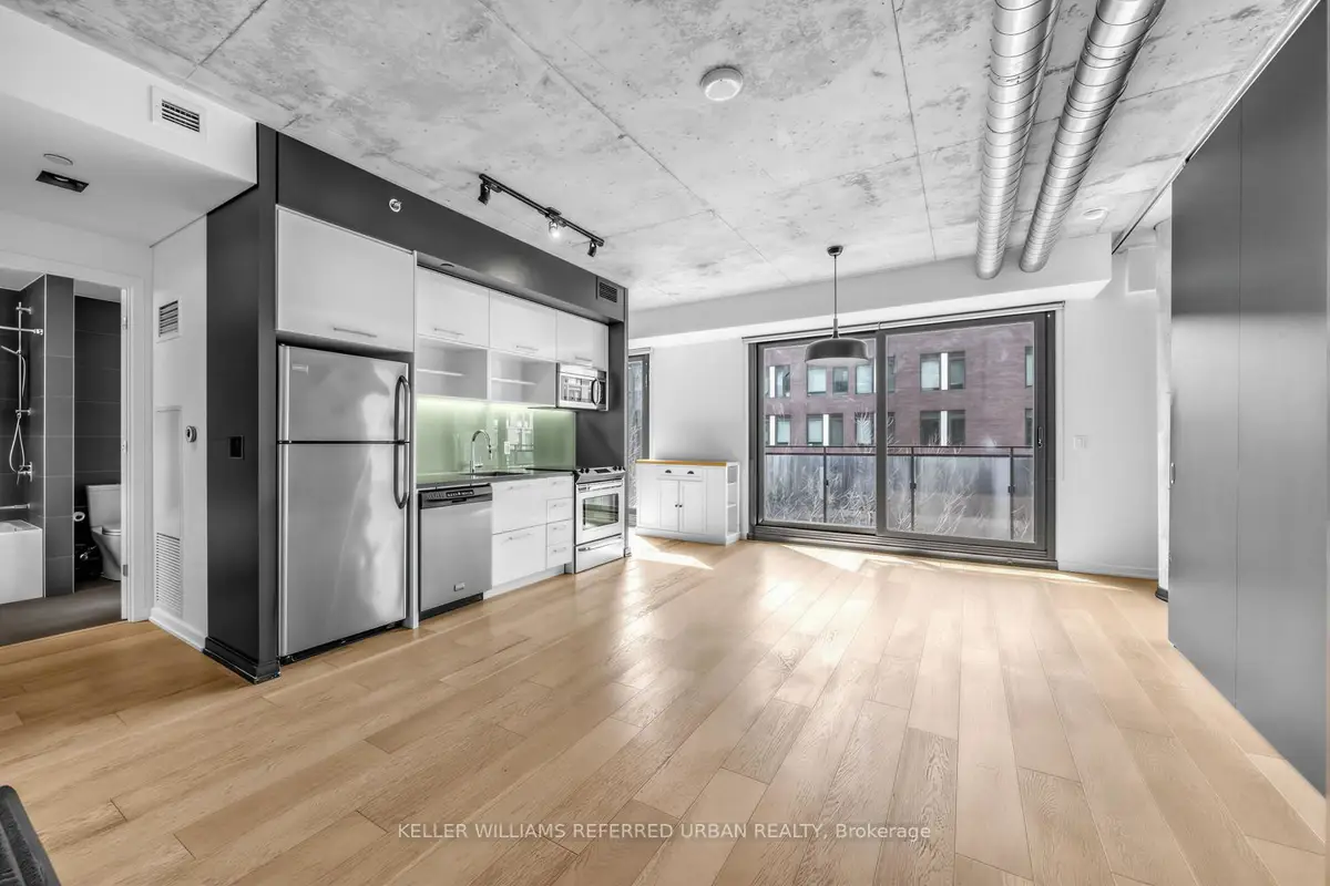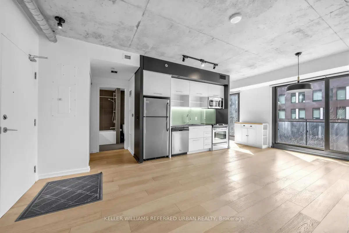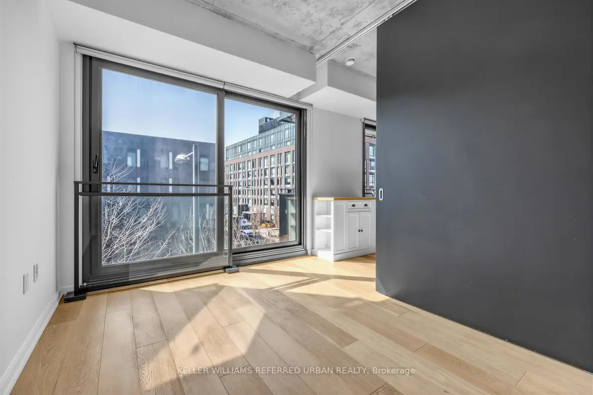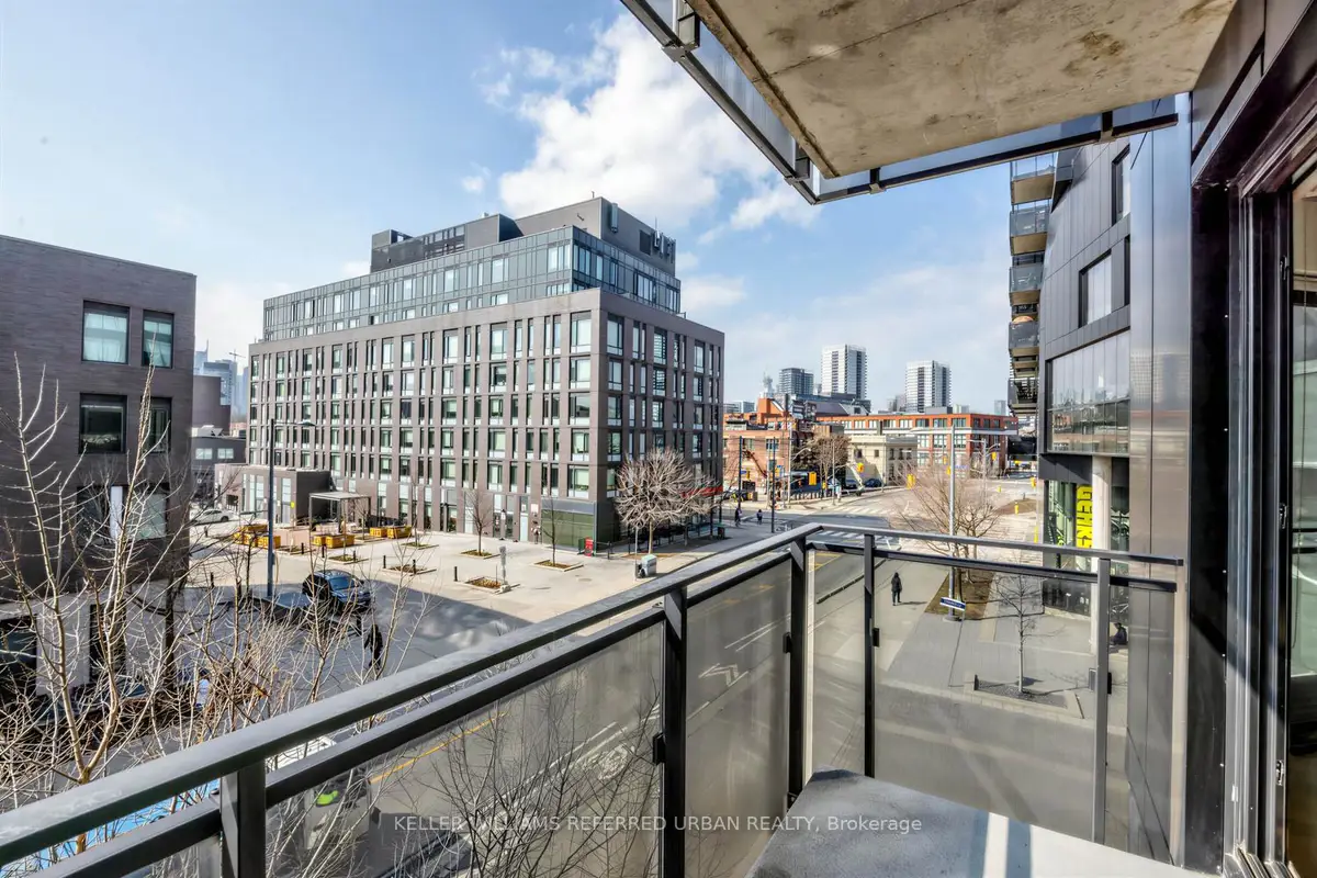 Welcome to River City - where modern design meets exceptional urban living. This beautifully appointed 865 sq. ft.2-bedroom, 2-bathroom residence offers a highly desirable northwest exposure with expansive floor-to-ceiling windows, flooding the space with natural light and showcasing stunning wraparound views. Featuring soaring ceilings and hardwood flooring throughout, this thoughtfully designed layout delivers both style and functionality. The spacious primary retreat includes a walk-in closet and versatile den space, complemented by a well-proportioned second bedroom and two full bathrooms. Enjoy premium building amenities, including an outdoor pool, and unbeatable convenience with transit at your doorstep and quick access to the DVP, 404, and QEW. Everyday essentials, cafés, and dining are just steps away. Complete with one parking space, one locker, and two bike racks, this is an outstanding opportunity in one of the city's most sought-after communities.