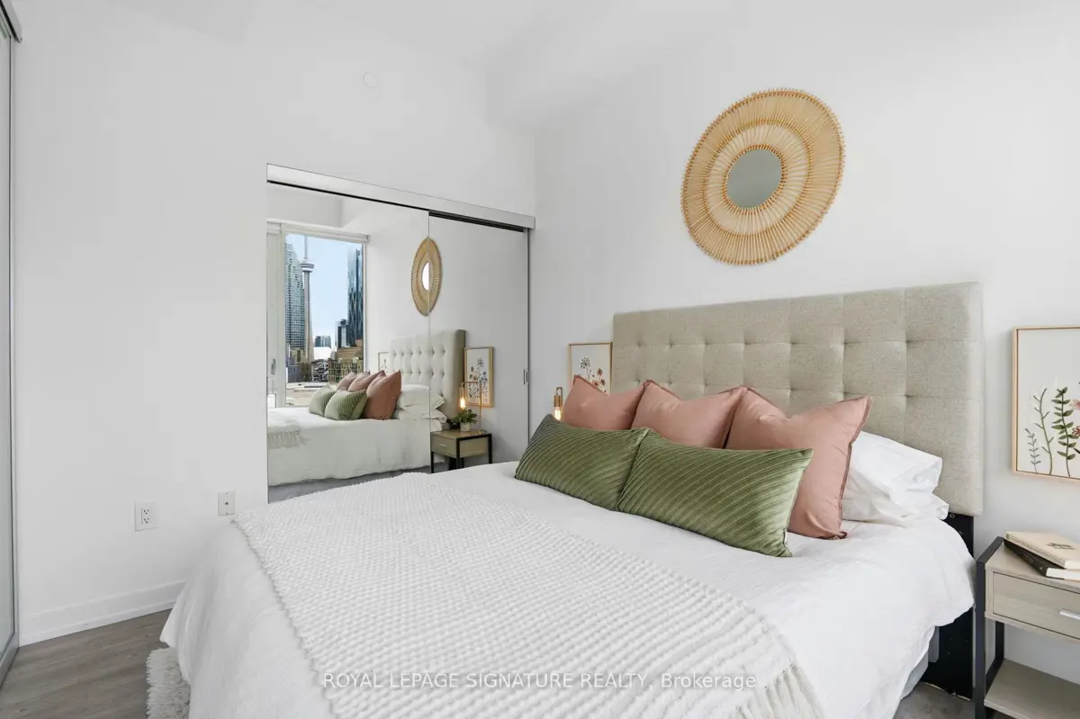Experience elevated downtown living in this stunning corner suite in the heart of the St. Lawrence Market district. This thoughtfully designed 2-bedroom, 2-bathroom residence features a functional split-bedroom layout ideal for privacy and everyday comfort, complete with one parking space. Enjoy spectacular west-facing city views through expansive floor-to-ceiling windows that flood the space with natural light and frame an incredible, unobstructed view of the CN Tower and downtown skyline. Soaring 10-foot ceilings enhance the sense of space, creating a bright, airy, modern atmosphere. The building offers exceptional amenities, including 24-hour concierge and security service, an outdoor rooftop pool and terrace with seating/BBQ area, a three-level fitness centre, party room with kitchen and social lounge, billiards lounge and games room, library and co-working space, as well as guest suites and visitor parking. Perfectly positioned in one of Toronto's most sought-after neighbourhoods, you are steps to St. Lawrence Market, The Esplanade, Union Station, the Financial District and the waterfront. Commuting is effortless with quick access to the DVP, TTC and major transit hubs, while world-class dining, shopping and entertainment are right outside your door. A rare opportunity to own a beautifully designed suite with unbeatable skyline views in the centre of Toronto's most iconic downtown community.