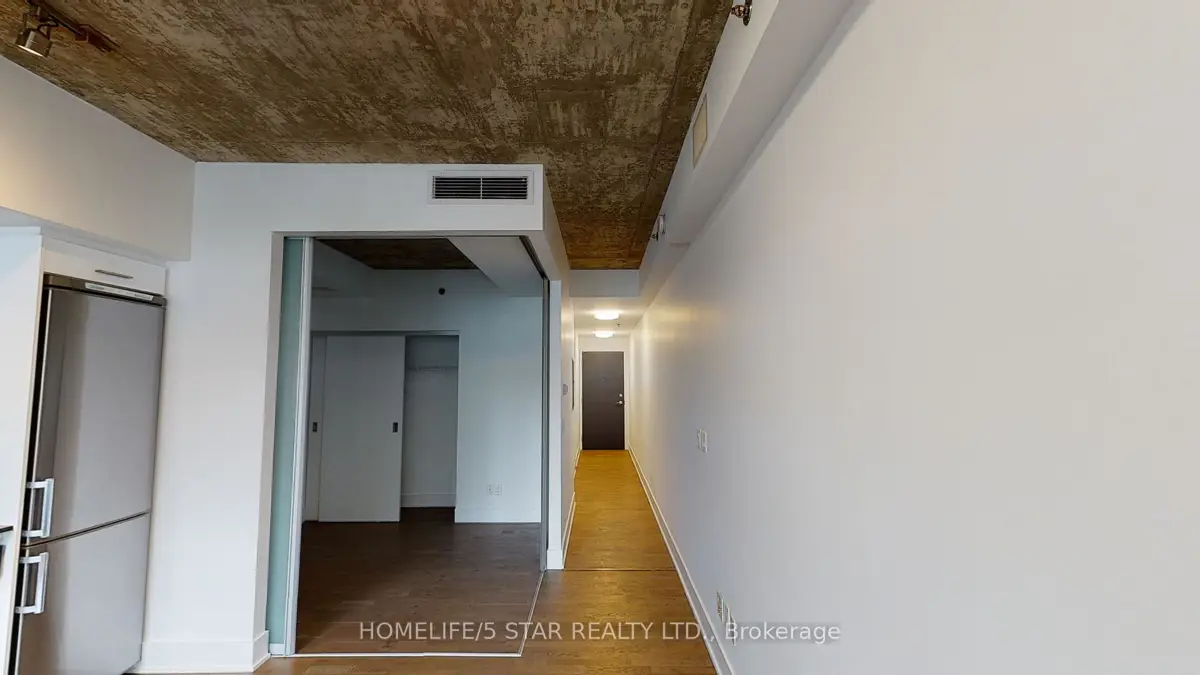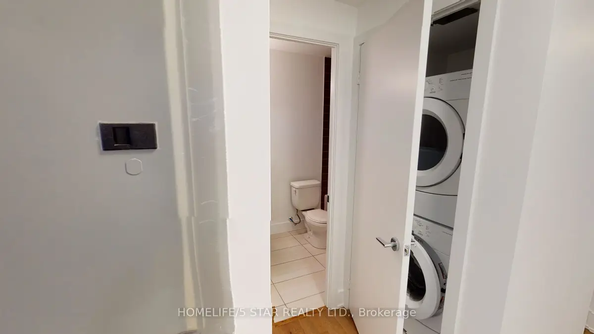 Welcome to Sync Lofts! This quiet boutique condo is located in the heart of Riverside, one of the city's most dynamic neighbourhoods. Steps to the Broadview Hotel, trendy restaurants, cafés, bars, and great local shopping. Minutes to the Financial District, Downtown Core, Beaches, Distillery District, and Leslieville, with easy access to some of the city's best walking and biking trails. Conveniently located steps from the Queen and King streetcars and adjacent to the DVP. Bright unit with a practical layout, featuring hardwood floors throughout and 9-foot ceilings. Modern finishes and a contemporary kitchen with integrated stainless steel appliances, including fridge, stove, dishwasher, microwave, washer, and dryer. Spacious south-facing balcony. Building amenities include a rooftop patio with BBQs, exercise room, and kitchenette area. Tenant pays electricity. Option for Parking and Locker Available. UNIT WILL BE PROFESSIONALLY CLEANED AND PAINTED PRIOR TO OCCUPANCY.