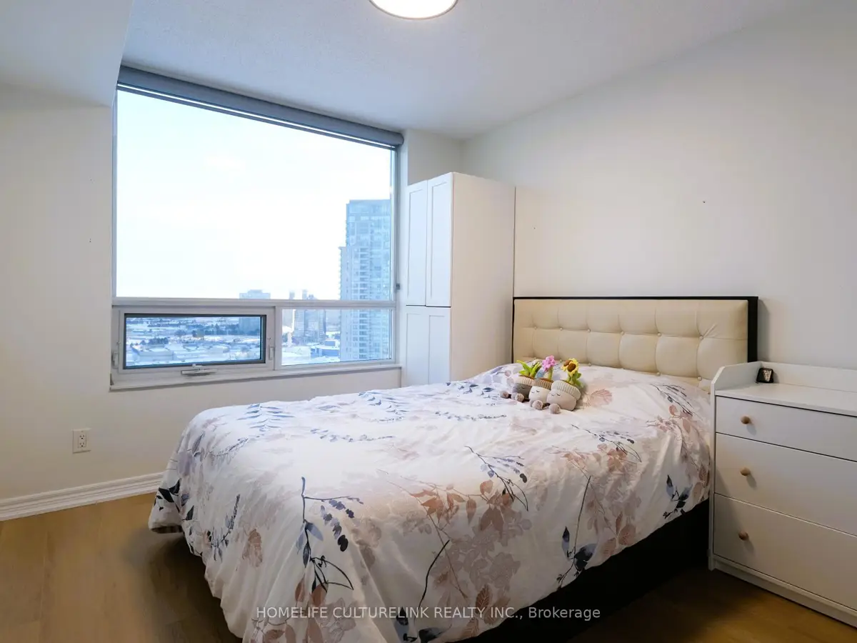 Discover Exceptional Living In This Bright And Spacious 2-Bedrooms, 2-Bathrooms Condo By The Renowned Builder Tridel. This Home Features A Sophisticated Split Bedroom Layout And An Breathtaking Unobstructed Northeast View That Floods The Unit With Abundant Natural Light. Contemporary Kitchen Boasts Granite Countertop, Stylish Backsplash, Stainless Steel Appliances And A Functional Breakfast Bar. Refinished And Professionally Repainted Hardwood Kitchen Cabinetry (2025) . Thoughtfully Upgraded With New Wide Plank Laminate Flooring (2025) And Modern Light Fixtures. The Primary Bedroom Features A Walk-In Closet And 4-Piece En-Suite. A Rare Tandem Parking Spot That Conveniently Accommodates 2 Vehicles. Enjoy A Resort Style Lifestyle With Spectacular Amenities Including Rooftop Garden, Indoor Pool, Party Room, Exercise Room, Visitor Parking, And Much More. Ideally Situated Minutes From Scarborough Town Centre, Hwy 401, Public Transit, Supermarkets, Restaurants, Schools, Parks.
