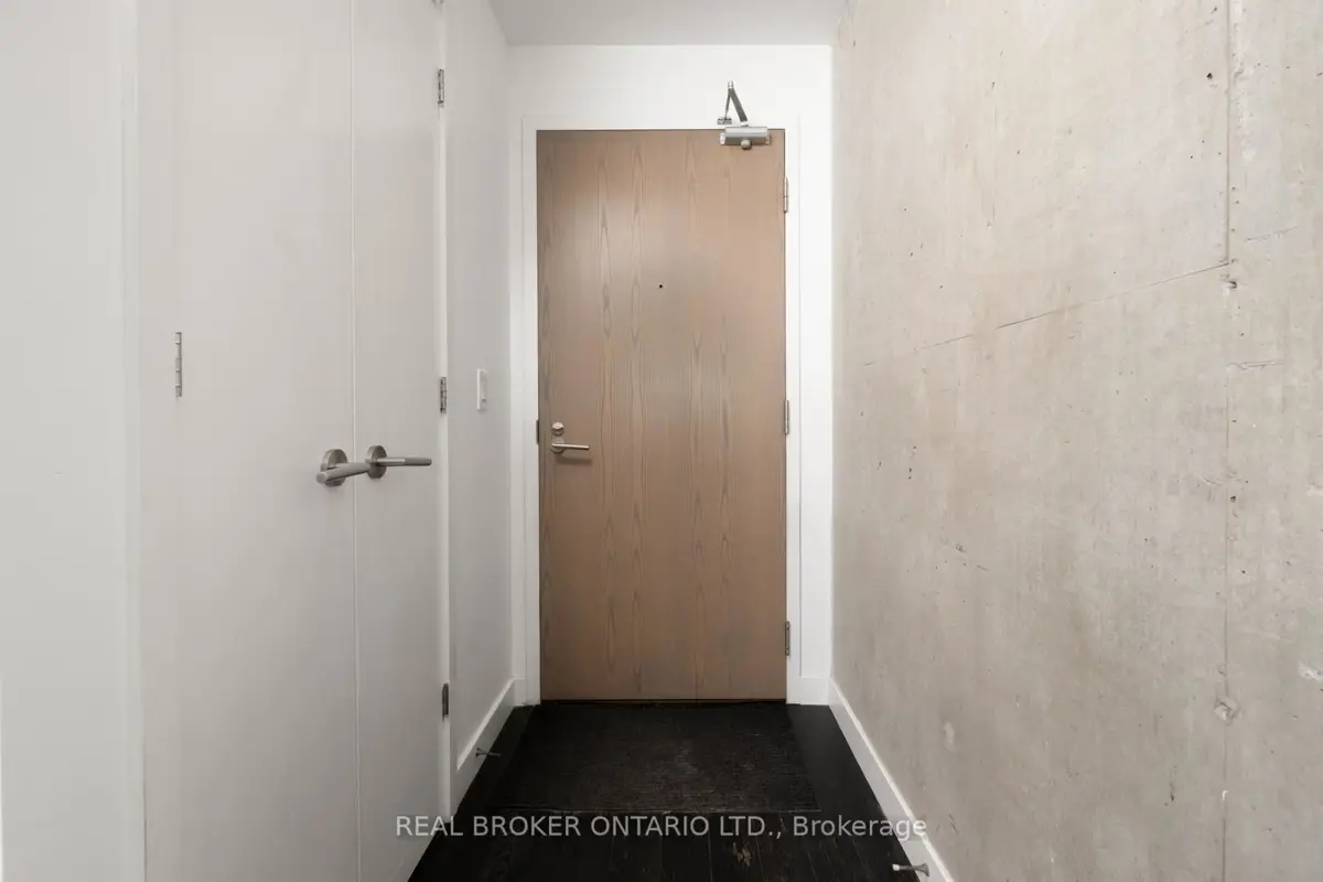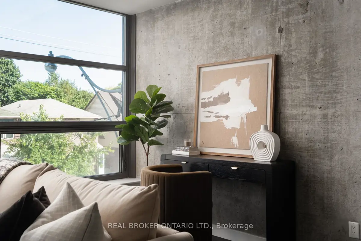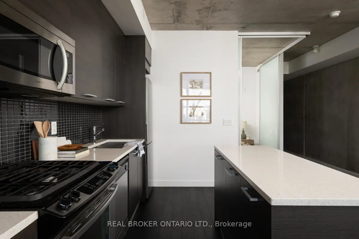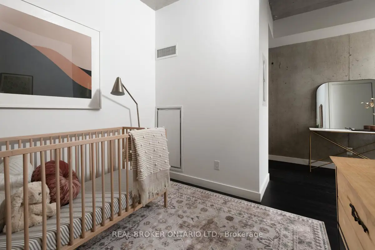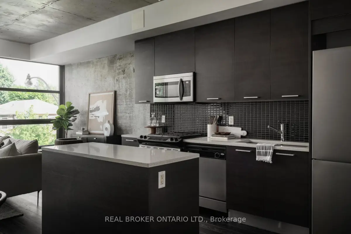 Welcome to The Ninety, a boutique loft residence where contemporary design meets authentic urban character. This thoughtfully designed 1+den suite showcases exposed concrete walls and ceilings, hardwood flooring, stainless steel appliances, and a seamless open-concept layout ideal for modern living.The generous den offers exceptional flexibility-perfect as a second bedroom, home office, or creative space-while expansive wall-to-wall windows flood the living area with natural light, enhancing the home's bright, airy atmosphere. Renowned as one of Toronto's most sought-after boutique loft buildings, The Ninety blends historic charm with modern finishes and offers desirable amenities including a landscaped courtyard terrace, party room, and concierge service. Ideally located in the heart of Riverside/Leslieville, you're just steps from Queen Street East's cafés, restaurants, shops, parks, and trails, with convenient access to transit and major highways.