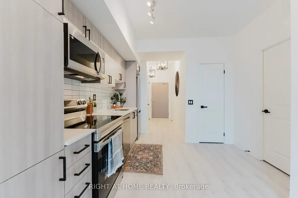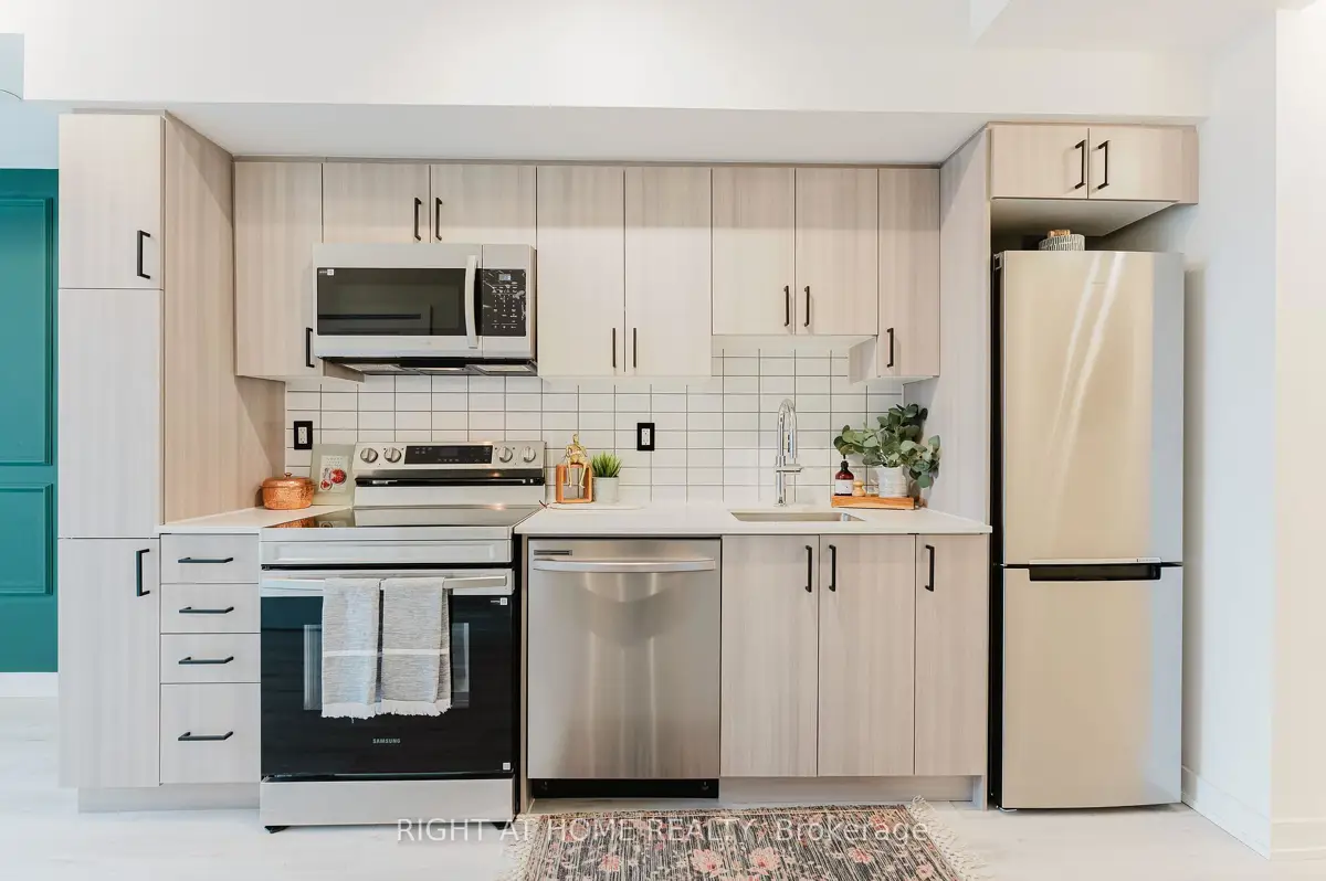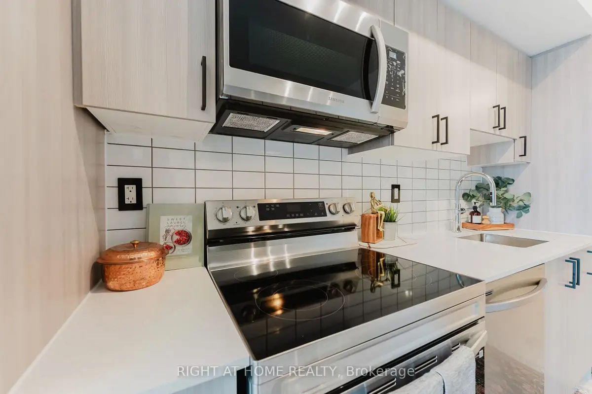 Enjoy the convenience of reaching downtown in approximately 35 minutes, with Pickering GO Station just 5 minutes away. Step into this brand new, never-lived-in 1 Bedroom + Den unit offering modern comfort, ultra-luxury finishes, and exceptional convenience. This upgraded unit features 9-foot ceilings, abundant natural light, a spacious bedroom, and an oversized bathroom, creating a bright and inviting living space. The unit is carpet-free throughout and showcases premium upgrades including two modern feature walls, upgraded interior doors, sleek black slate door handles, hinges, and knobs throughout the unit, along with upgraded light fixtures and modern electrical switches for a refined contemporary look. The modern kitchen is fully equipped with brand new stainless steel appliances, including a dishwasher, fridge, stove, and microwave, plus an upgraded deep 24-inch pantry designed to accommodate all your cooking and storage needs ! The in-suite laundry comes complete with a washer and dryer for everyday convenience. The separate den area can serve as a home office or a quiet reading nook, making it ideal for additional functional space beyond a typical one-bedroom layout. The den also features modern upgraded black slats, adding both style and character. The oversized bathroom is beautifully upgraded with a modern vanity mirror, upgraded toilet paper holder, upgraded shower rod and curtain, sleek black towel bar, and a convenient upgraded linen cabinet providing additional storage. *Bonus*: The unit comes with modern black sleek curtain rods/curtain tracks and blackout curtains, providing both style and privacy for your comfort. *Additional Convenience*: A private locker is included for all your storage needs and is conveniently located on the same floor as the unit. Enjoy 5-Star living with premium building amenities including fitness gym, pool, party room, pet spa, etc. *Internet Included* Some images have been virtually staged.