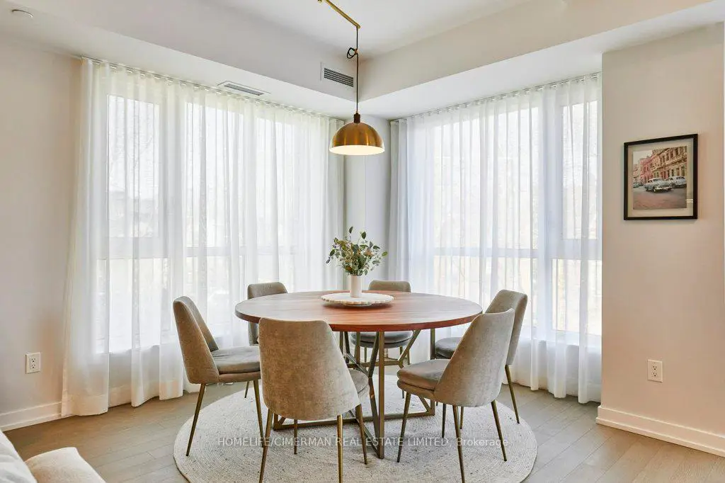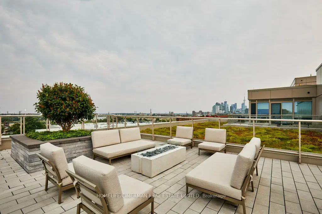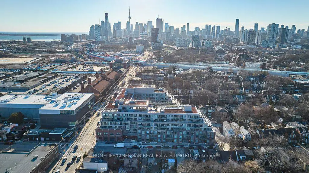 The Wonder Condos - Leslieville's iconic former Weston Bakery, reimagined into one of the east end's most sought-after addresses. This 1,102 sq. ft. northeast corner suite offers a rare, one-of-a-kind floor plan with 9 ft smooth ceilings, expansive windows, and a highly functional 2-bedroom plus den, 2-bath layout. Bright and beautifully finished, it delivers the scale of a home with the ease of condo living. The kitchen is a true focal point, featuring upgraded cabinetry, quartz backsplash, custom quartz waterfall peninsula, full-size Whirlpool appliances, fully integrated dishwasher, Fisher& Paykel refrigerator, under-cabinet lighting, undermount sink, and a custom pantry cabinet. Upgraded flooring runs throughout, complemented by enhanced bathroom tile selections for a polished, cohesive feel. The primary bedroom includes custom cabinetry in the walk-in closet and a well-appointed ensuite with heated floors for added comfort. The second bedroom offers flexibility for guests or family, while the separate den with closet functions perfectly as a dedicated home office or creative workspace. Custom window treatments are included, and all appliances and fixtures convey, making this a turnkey opportunity. Enjoy your private open balcony, underground parking, and locker. Residents benefit from exceptional amenities including a rooftop terrace with unobstructed city views, BBQs and fire pit, fully equipped gym, concierge, co-working space with WiFi, indoor family and children's playroom, pet wash, and bike storage. Steps to the best stretch of Queen Street East, you're surrounded by top restaurants, independent boutiques, lively patios, transit, and excellent schools including Morse Street Junior Public School. On the Queen streetcar line and close to two future Ontario Line stations for seamless downtown access. A rare blend of space, design, and full-service urban living in the heart of Leslieville. Furnishings (excluding dining set and piano) negotiable.