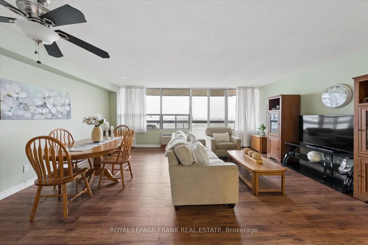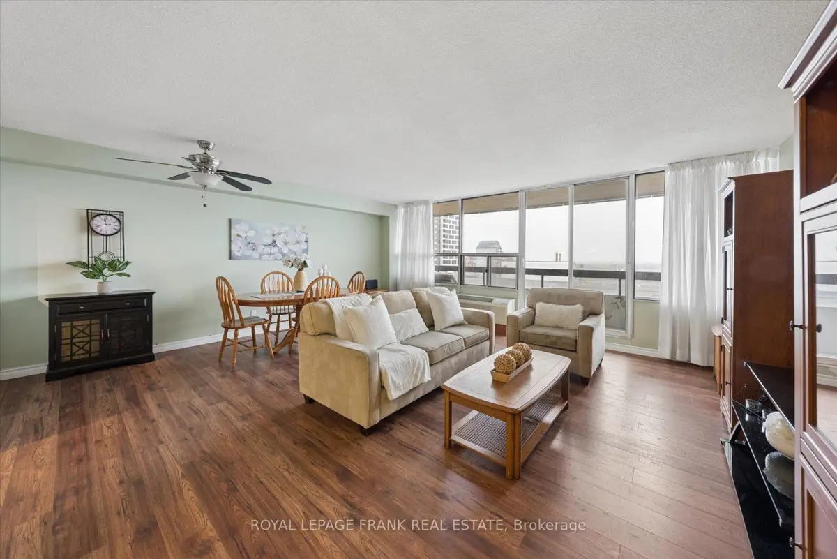 Welcome to Unit 915 at 55 William St E - a bright and well-maintained 2-bedroom, 2-bathroom, 1-underground parking condo in the heart of downtown Oshawa. This spacious suite offers a functional layout with generous living and dining areas, ideal for both everyday living and entertaining. The unit shows beautifully and features large windows that bring in plenty of natural light, creating a warm and inviting atmosphere. The modern kitchen offers plenty of cabinetry and workspace, with a pass through window to the bright living space. The unit shows exceptionally well and features updated laminate flooring, creating a clean and contemporary feel.The primary bedroom offers a 2pc ensuite for added comfort, while the second bedroom provides flexibility for guests, a home office, or additional living space. Enjoy the added convenience of in-suite laundry and a large utility room. Step out onto your private balcony overlooking the landscaped courtyard with desirable southern exposure - perfect for enjoying sunshine throughout the day. Enjoy condo living in a well-managed building just steps from schools, the YMCA, Tribute Communities Centre, shopping, restaurants, parks, and public transit. With easy access to major amenities and everything downtown Oshawa has to offer, this is an excellent opportunity for first-time buyers, down sizers, or investors alike. Move-in ready and offering outstanding value in a central location - don't miss your chance to call this fantastic condo home.