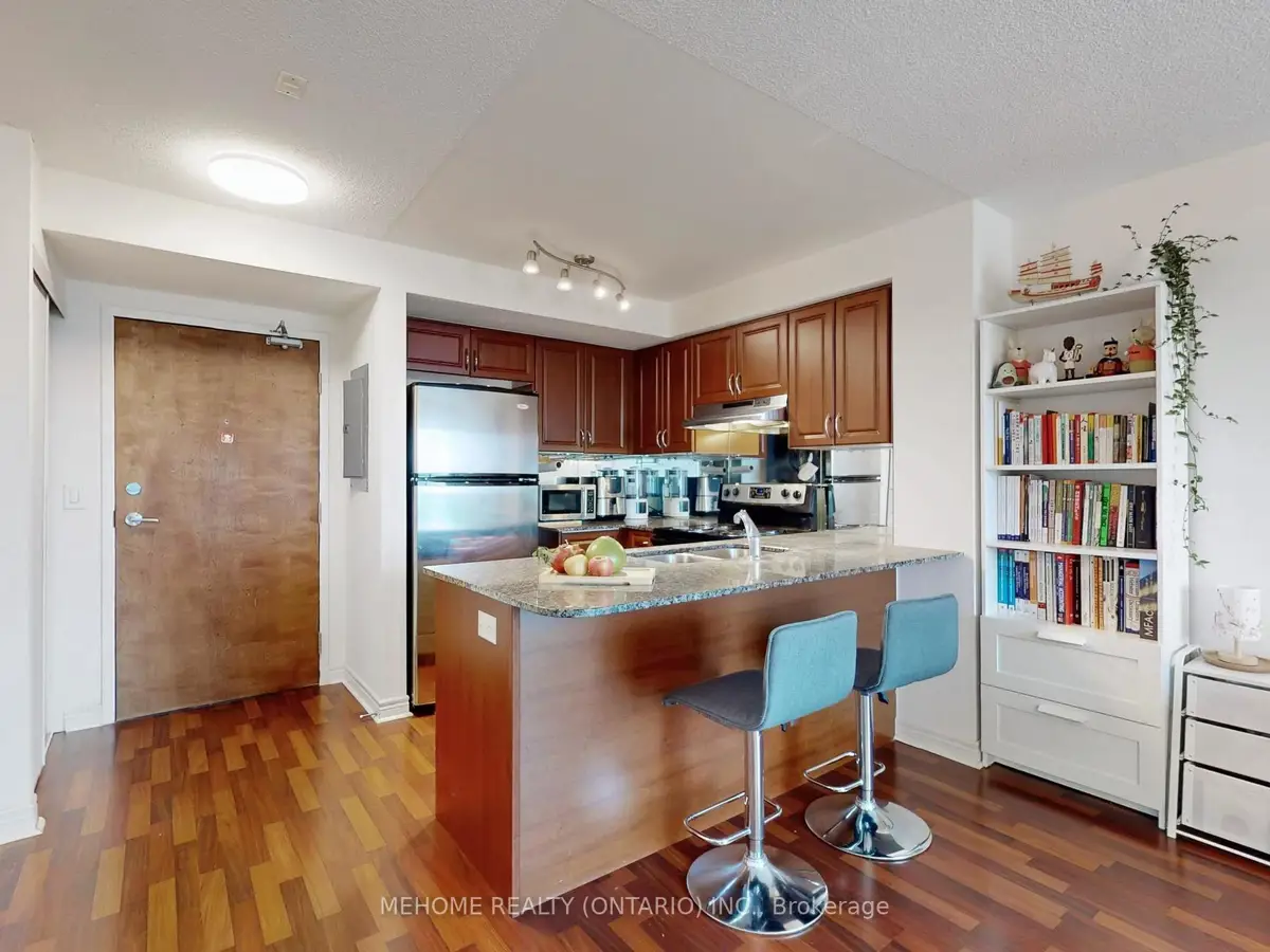 Welcome to this bright, east-facing suite in the desirable Clairlea community, complete with parking and a locker. This beautifully maintained, move-in ready condo offers a thoughtfully designed open-concept layout filled with natural morning light, enhanced by fresh interior paint and modern laminate flooring throughout. The spacious kitchen features granite countertops, stainless steel appliances, and a convenient breakfast bar, while the well-appointed four-piece bathroom includes a tub and ceramic flooring. Generous storage space and a functional layout make the home both stylish and practical. Residents enjoy a well-managed building with excellent amenities including a fully equipped gym, exercise room, library, party/meeting room, and a stunning rooftop terrace and garden offering sweeping city views. Ideally located just steps from Warden Subway Station with direct access to TTC Line 2 and close to the upcoming Eglinton Crosstown LRT (Golden Mile stop), commuting across the city or to downtown Toronto-approximately 20 minutes away-is effortless. Surrounded by parks, schools, shops, restaurants, theatres, Eglinton Square Mall, Eglinton Town Centre, and Warden Hilltop Community Centre, this exceptional home offers the perfect blend of comfort, convenience, and future growth potential-an outstanding opportunity for first-time buyers, investors, or those looking to enjoy vibrant urban living in a well-connected neighbourhood.