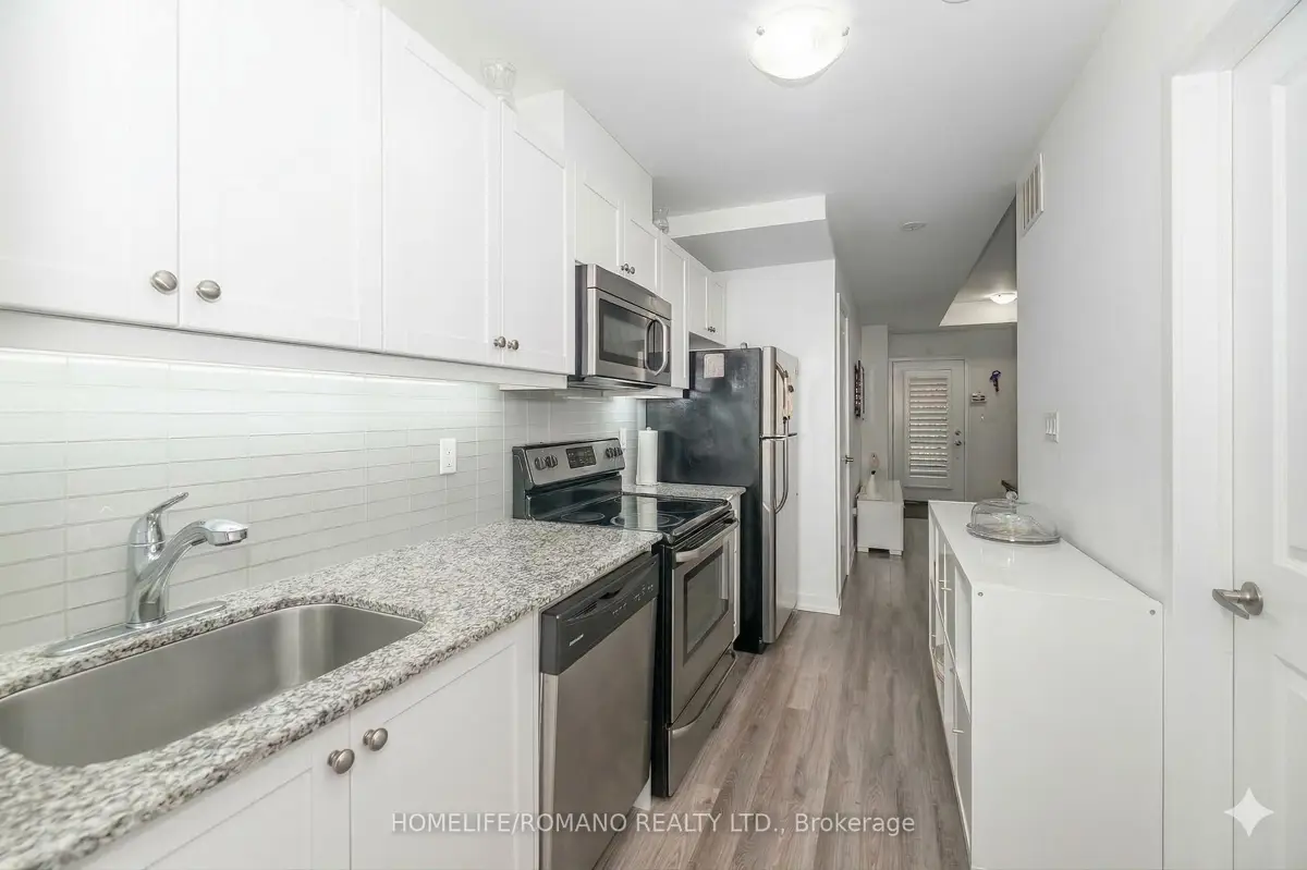 Refined Urban Living. 1-Bed + Den with Unbeatable Connectivity. Experience the perfect fusion of designer upgrades and transit-oriented convenience.This turnkey residence in the heart of Yorkdale Village is meticulously designed for the discerning professional, savvy investor, or first-timeHomebuyer. Versatility: 1+1 Layout: A spacious primary bedroom complemented by a flexible den-perfect as a functional secondbedroom, executive home office, or private fitness studio. Modern Galley Kitchen: Upgraded with granite countertops, a large stainless steelundermount sink, premium appliances, and custom under-cabinet LED lighting. Elegant Finishes: Outfitted with high-end wooden Californiashutters throughout for timeless style, superior light control, and energy efficiency. Smart Storage: Includes one owned locker and an intelligently designed floor plan with ample in-suite storage in the laundry room and front closet. The Location & Lifestyle Located in one of Toronto's most accessible hubs, you are seconds away from everything you need: Transit & Commute: Seconds to TTC, 5 minutes to Wilson Subway Station, and immediate access to Highway 401 and the Allen Expressway. Retail Therapy: Walking distance to Yorkdale Mall, Costco, Home Depot, and local cafes. Community Perks: A family-friendly enclave near Downsview Park, the new Rogers Stadium, Humber River Regional Hospital, and top-tier community centers.