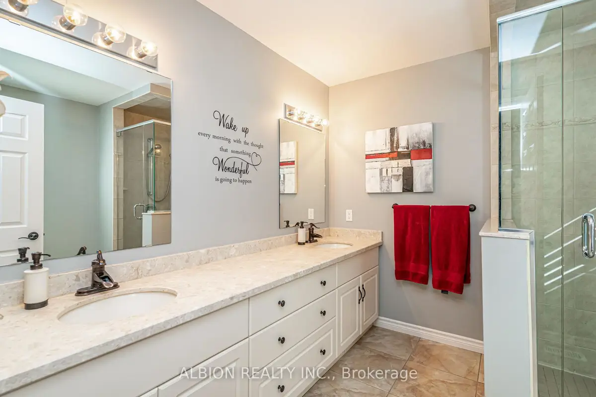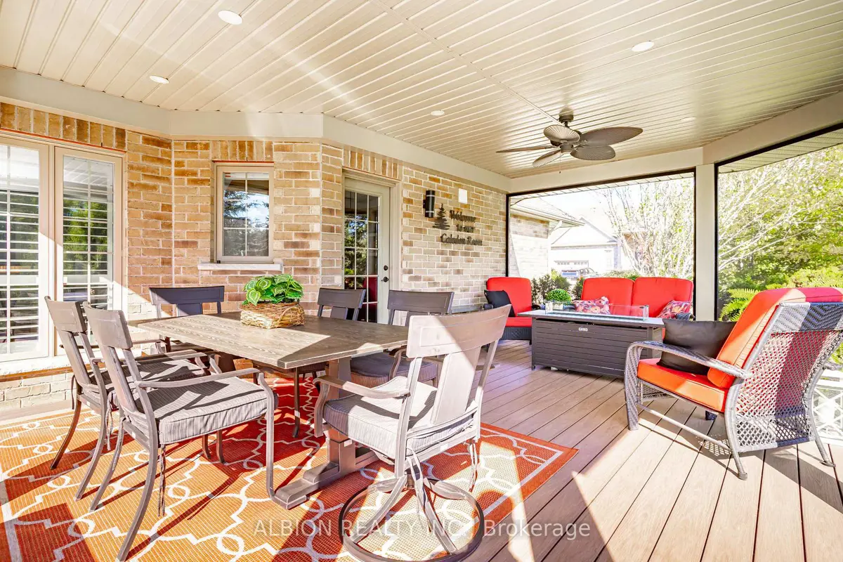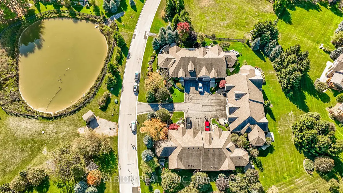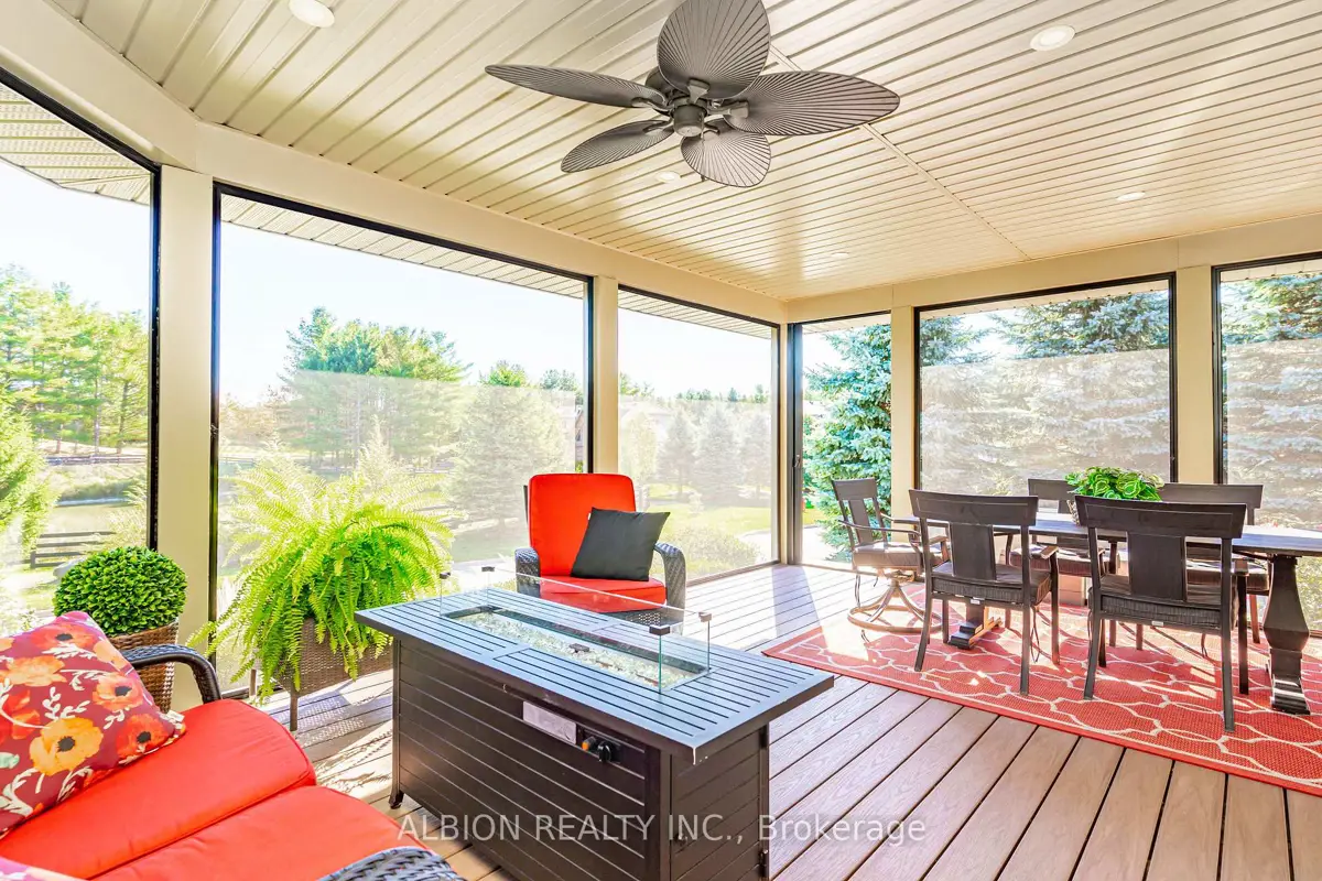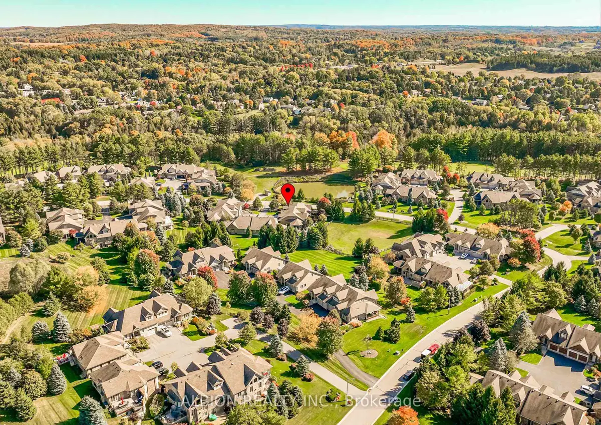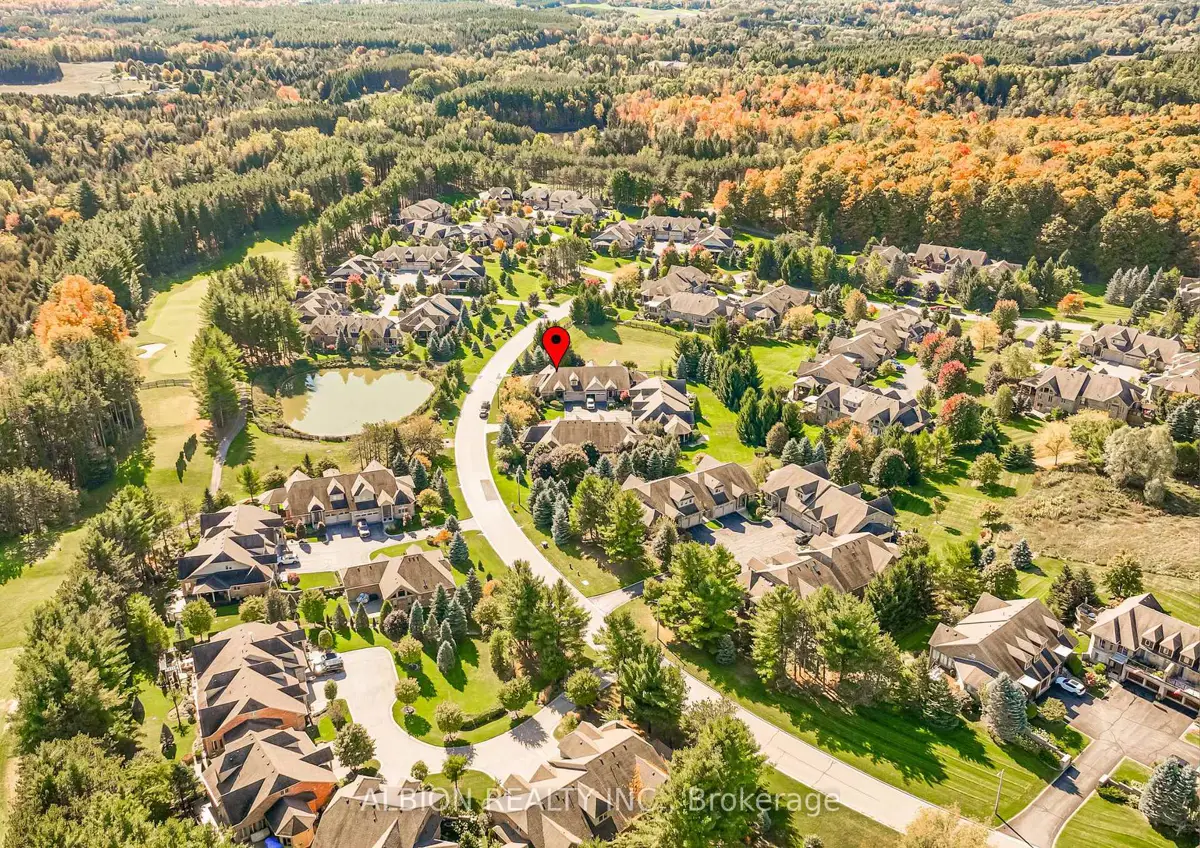 Living the Dream! Elegant lifestyle in scenic Legacy Pines Adult Community. Picturesque golf course setting. Stunning premium bungalow overlooking beautiful natural pond and forested views. Spotless well appointed home with upgrades galore. Gorgeous palladian window, vaulted great room with stone wall & fireplace, family sized formal dining room, open concept chef's kitchen with custom pull out drawers in cabinetry, gleaming quartz counters, newer tile backsplash, fabulous centre island with wine rack, touchless faucet, pot-lites & undermount lighting. Amazing south facing custom built screened in Lanai with composite decking, natural gas firetable & bbq, and walkout to your own private patio. Retreat to the executive primary suite featuring custom walk in closet with organizers and spacious full ensuite. Main floor also includes a pretty guest bedroom, full bath and laundry room. Direct access to spacious garage with Epoxy coated floor. Charming wainscotting leads you to the huge rec.room with above grade windows and another stone surround fireplace. Two more bedrooms or home office make this level complete. Well run self-managed condo lifestyle with just 6 homes in this condo pod. Make this your next home in this charming village setting with nearby Albion Hills Conservation park, Palgrave walking trails and Caledon Equestrian Park.