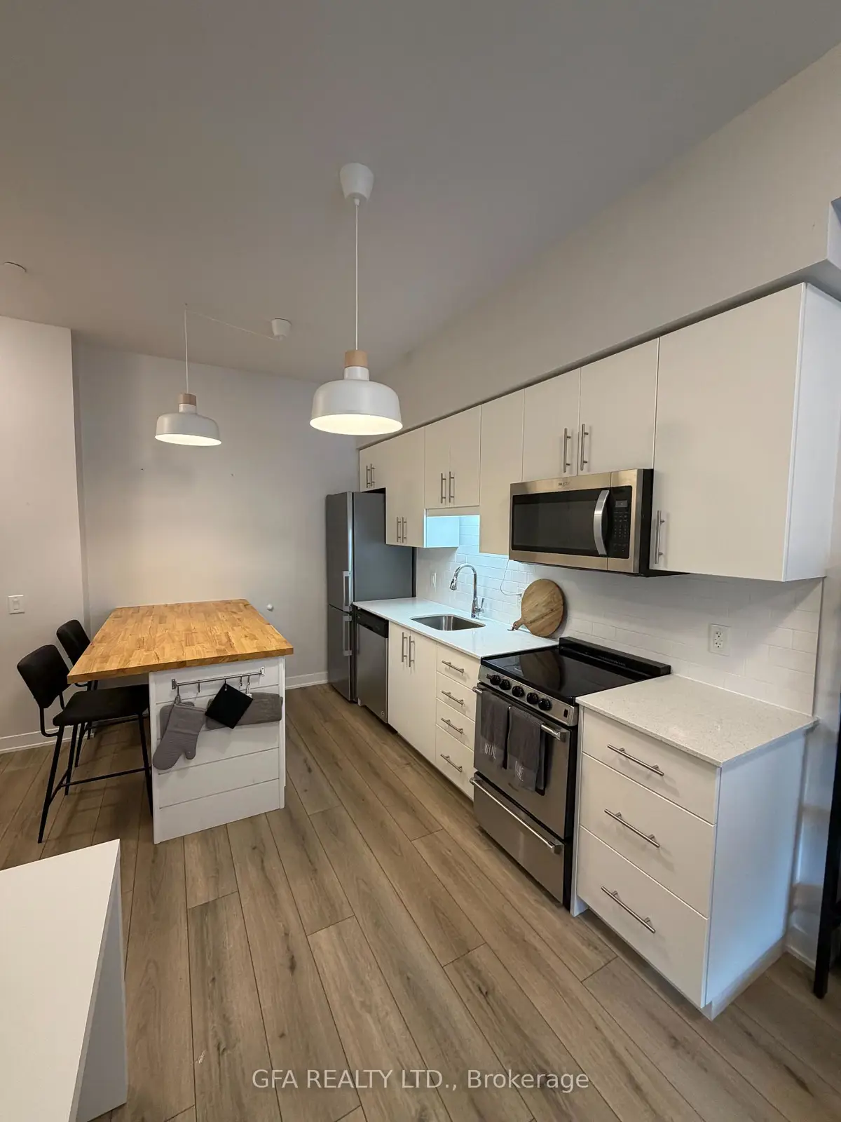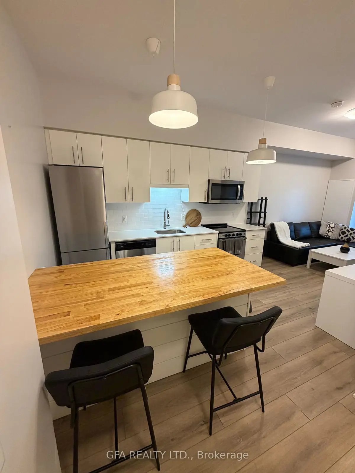 **FULLY FURNISHED** Welcome to The Hush Collection in the heart of Kitchener! Built in 2021, this bright and modern 580 sq ft south facing suite offers 9' ceilings, large windows, and a functional open-concept layout, plus a private walk-out terrace equipped with patio furniture and a gas BBQ- perfect for relaxing or entertaining. The contemporary kitchen features quartz countertops, a huge kitchen island, and stainless steel appliances. The spacious primary bedroom includes a large walk-in closet. The unit comes complete with in-suite laundry, Free Rogers internet, and one parking spot. Enjoy access to premium amenities and ample visitors parking. Ideally located just a 5 minute walk from the Zehrs Plaza, offering many retails shops and restaurants. Also minutes from Fairview Park Mall, downtown Kitchener, Highway 8, public transit, restaurants, schools, walking trails. Modern, convenient, and move-in ready - the perfect fully furnished rental in one of Kitchener's most desirable communities.