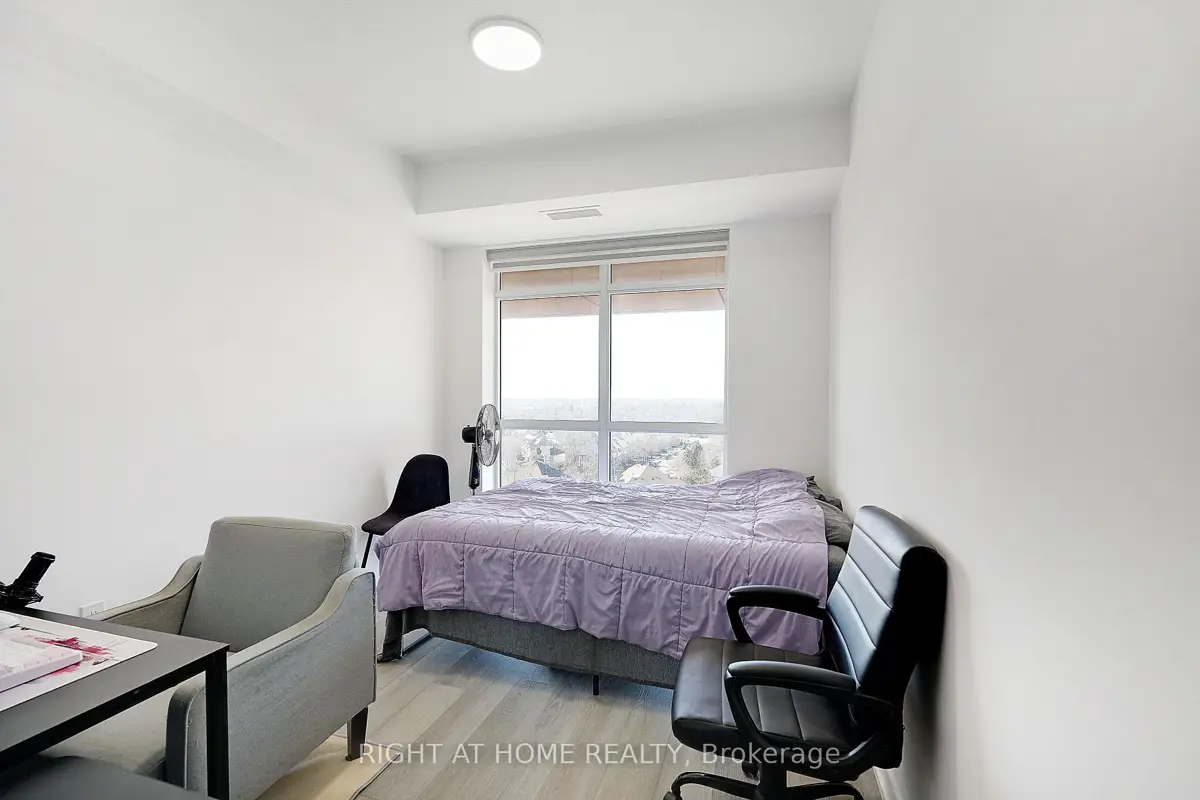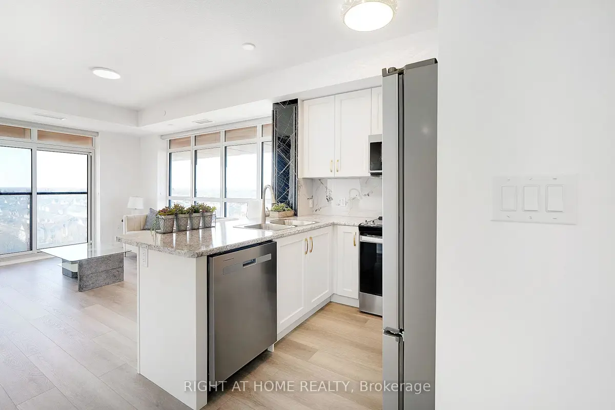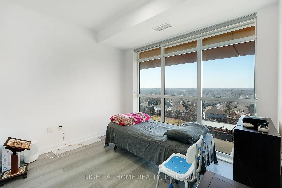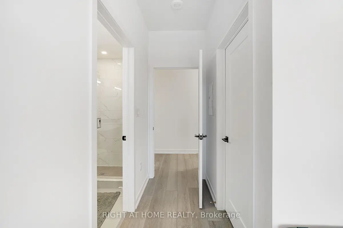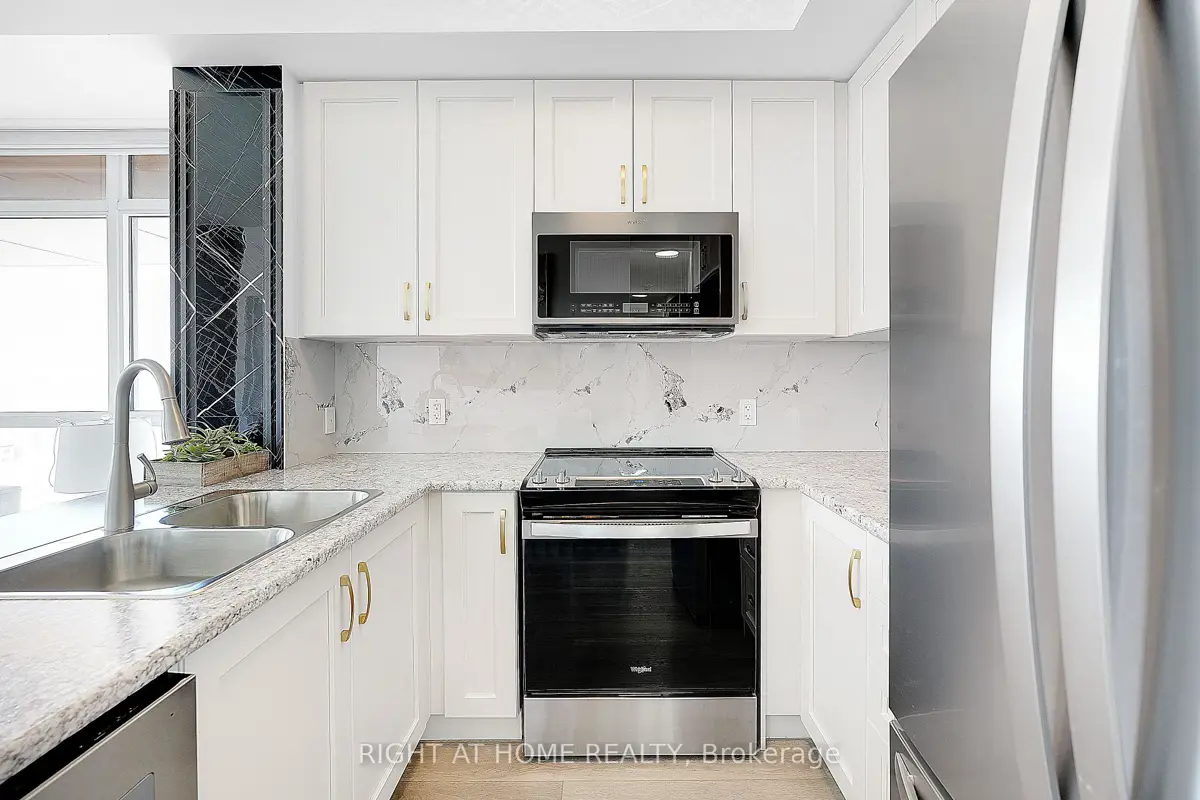 Modern Trend Living condo with 9-ft ceilings and an open-concept layout. Features ceramic tile flooring and bright LED lighting throughout. The stylish kitchen offers custom cabinetry, designer faucet, and laminate countertops with a backsplash, while the bathrooms boast quartz countertops and spa-inspired premium fixtures. Enjoy a feature wall for your TV, a French balcony, and an owned locker for extra convenience. Pet-friendly in both living areas and bedrooms. This energy-efficient building includes geothermal heating/cooling, secure entry, 2 owned underground parking spaces, rooftop terrace, and professional management. Freshly painted and perfectly located near parks, shopping, restaurants, and major highways.