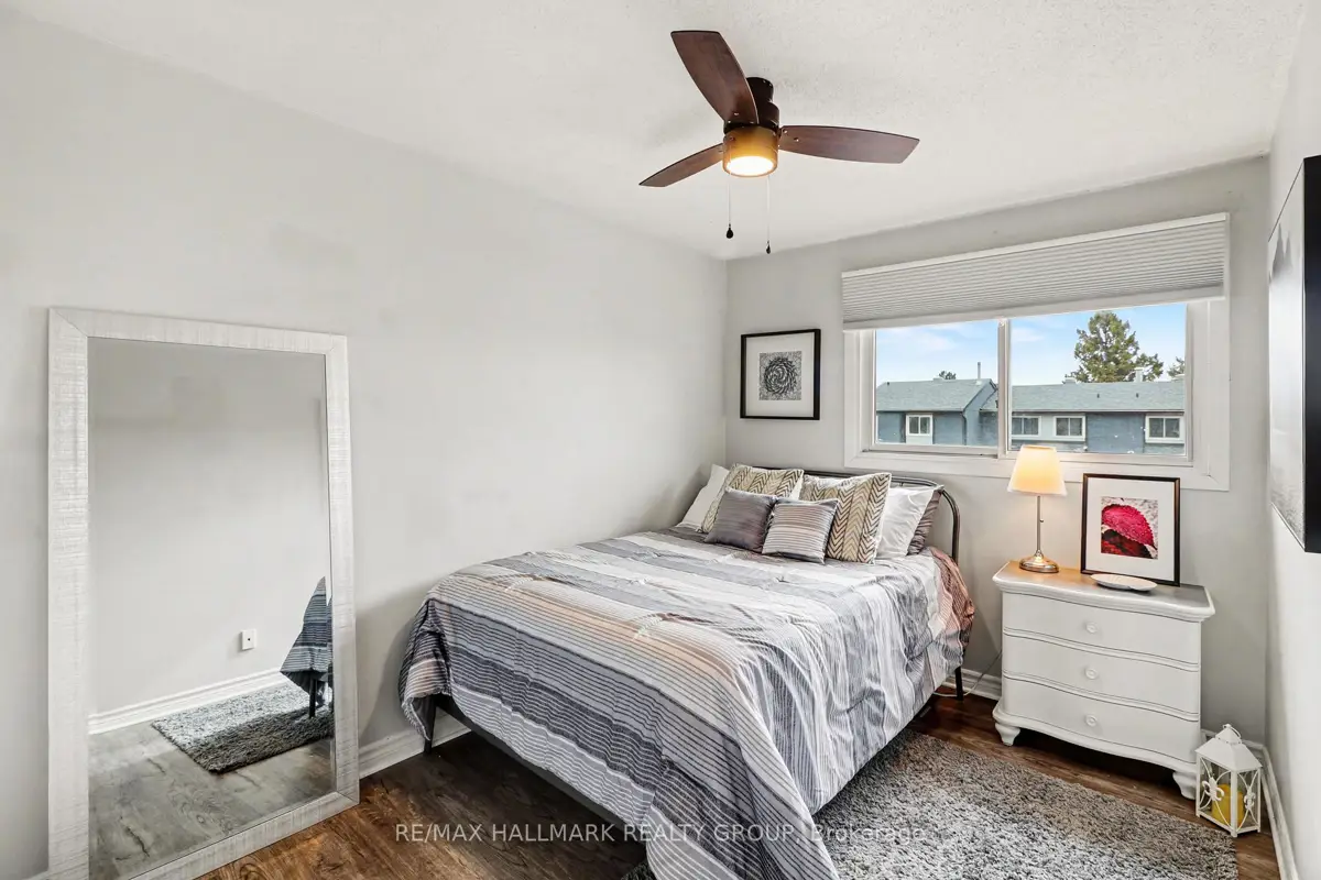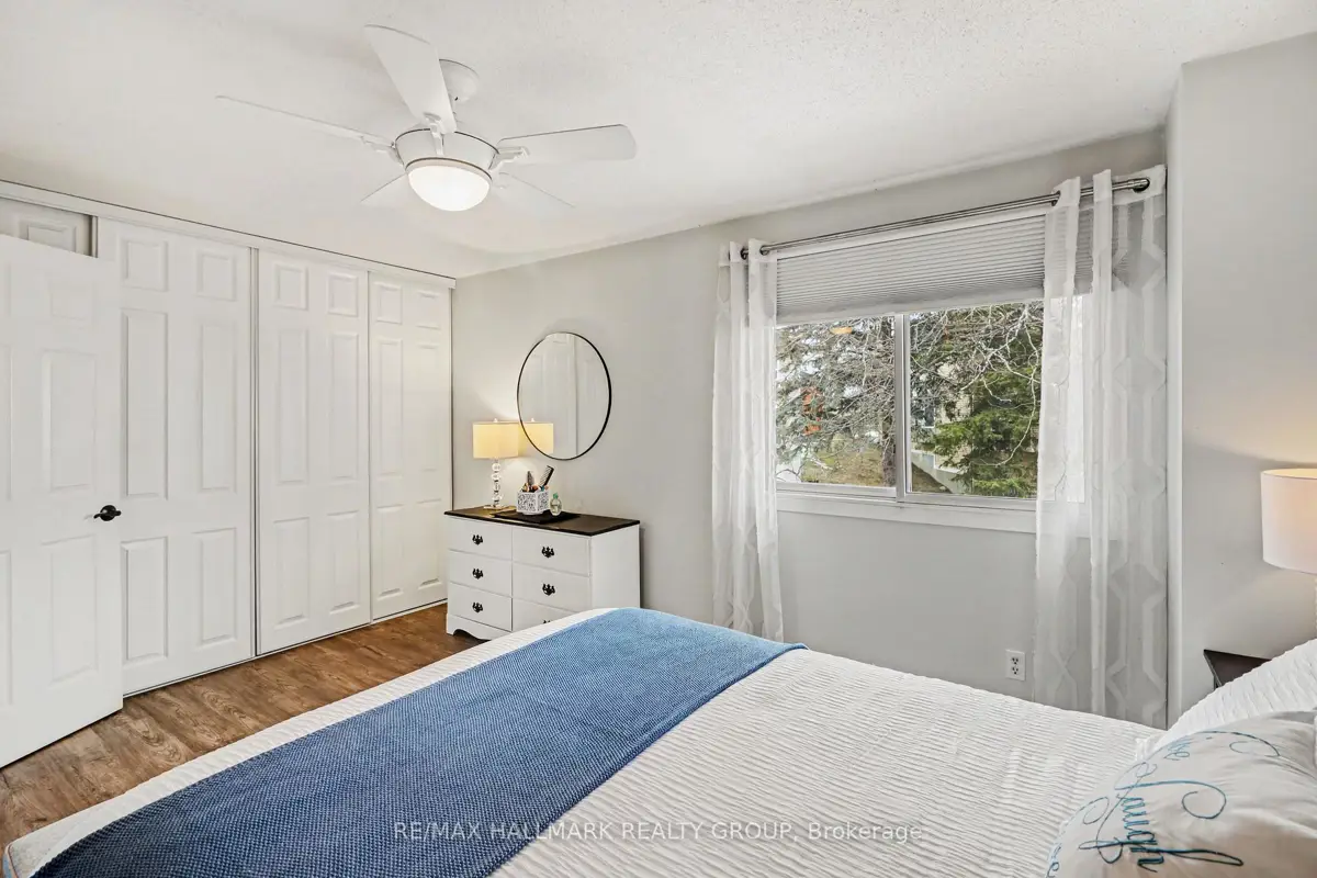 Welcome home to 16B Spring Grove Lane, a meticulously maintained townhome that perfectly blends style, comfort, and convenience in the heart of Barrhaven. From the moment you arrive, you will be impressed by the home's charming brick frontage and the rarity of a private front laneway-a feature seldom found in this neighborhood that allows you to park directly in front of your home, with a second parking space also available to rent. Stepping inside, you are greeted by an inviting atmosphere, highlighted by large front windows and gleaming hardwood floors that flow through the living and dining areas. The entire home is refreshingly carpet-free (except for the stairs), featuring a durable combination of hardwood, luxury vinyl, and ceramic flooring. The interior is tastefully decorated, boasting elegant wainscotting and high-end light fixtures throughout. The living room provides a large, cozy retreat, while the dining area is bathed in natural light and opens to the kitchen, which serves as a bright workspace with crisp white cabinetry and a lovely window overlooking your backyard. Outside, you will discover a beautifully manicured oasis with new wood fencing (2025), lush gardens, and mature trees that offer wonderful privacy. The upper level hosts three generous, light-filled bedrooms and a full bath, all updated with durable luxury vinyl flooring (2024). The expansive primary bedroom is a true sun-drenched sanctuary, providing a peaceful escape and an abundance of closet space. The second and third bedrooms are also spacious and bright, ensuring comfort for the entire household. The finished lower level adds significant value, featuring luxury vinyl plank flooring (2024), a convenient powder room, and a cozy wood-burning fireplace-a versatile layout perfect for a recreation room or home gym-while the furnace room offers plenty of additional storage. Ideally located near all amenities and situated right beside Burnett Park for , this property truly checks every box.