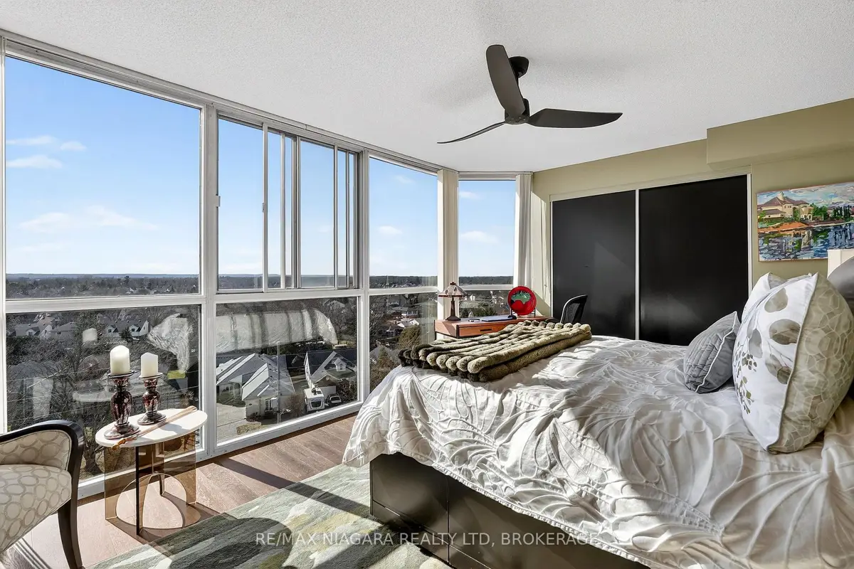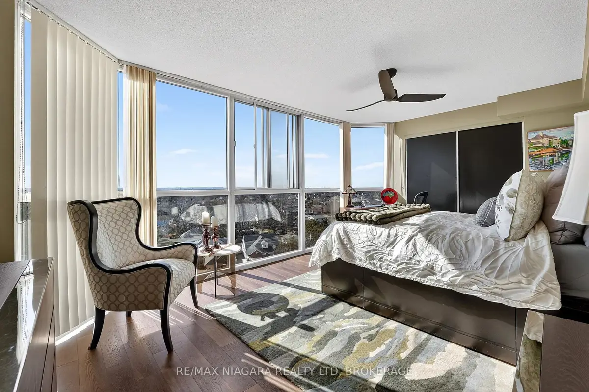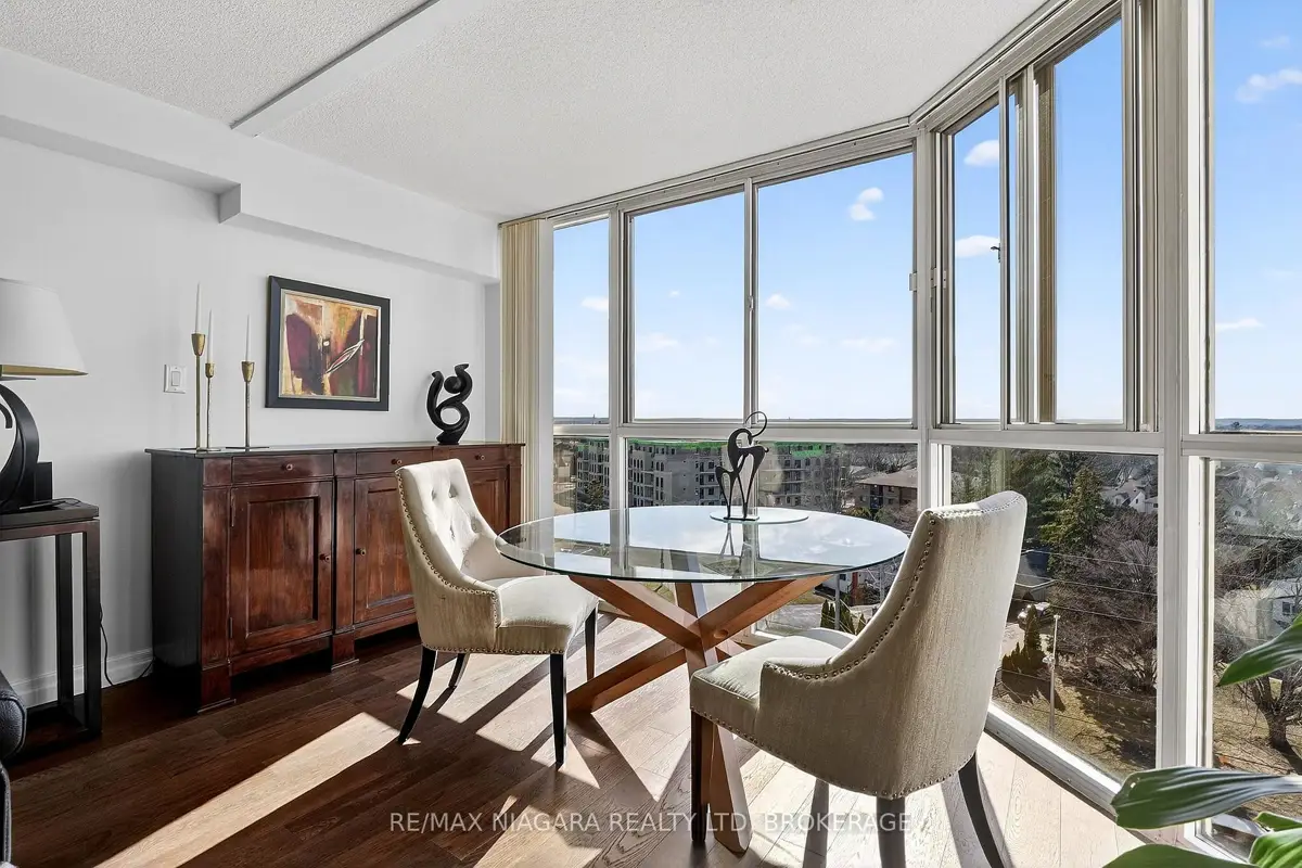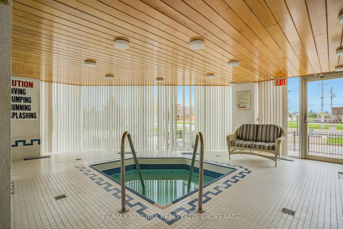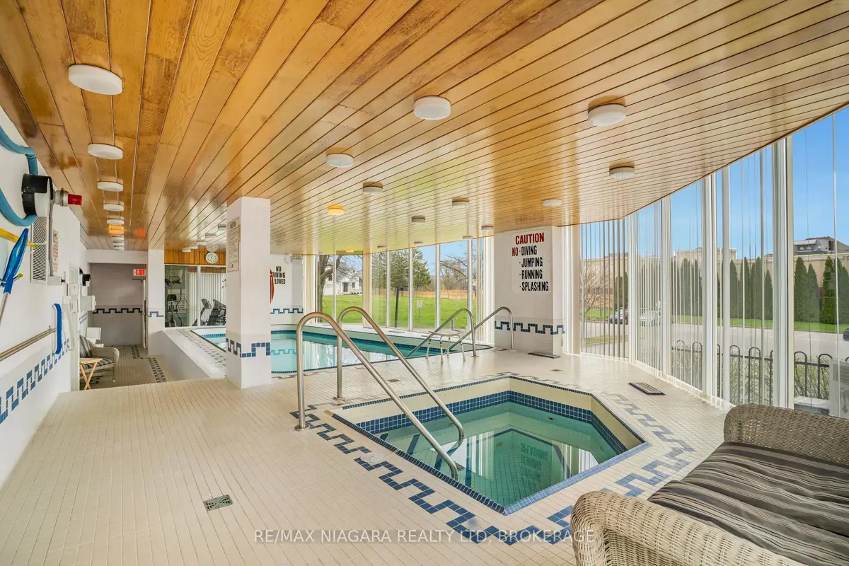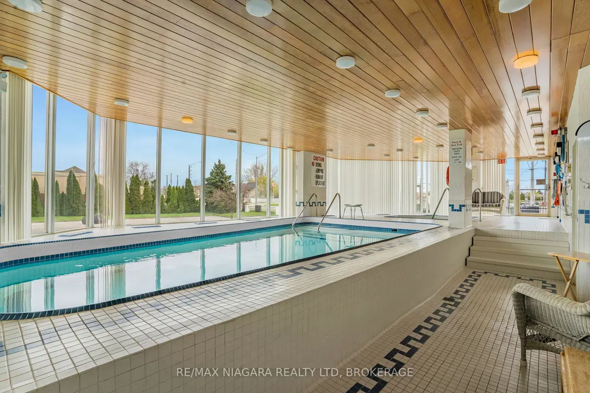 Welcome to Grenadier Place, move-in ready living in one of St. Catharines' most desirable neighbourhoods! This beautifully updated 2-bed, 2-bath condo has been thoughtfully renovated throughout, featuring fresh paint, modern flooring, updated bathrooms, stylish new light fixtures, and new appliances. Stunning views are framed by floor-to-ceiling windows, flooding the bright open-concept living and dining area with natural light. The sun-soaked solarium is the perfect spot to relax or create your own indoor garden retreat. The eat-in kitchen offers modern convenience, while the generous primary suite features a large ensuite bathroom and excellent closet space. In-suite laundry adds everyday ease. Residents enjoy an impressive amenity package including an indoor saltwater pool, hot tub, sauna, fitness centre, library, workshop, games and party rooms, BBQ area, and a guest suite for visitors. The unit also includes an owned underground parking space and storage locker. Condo fees include heat, hydro, water, air conditioning, cable TV, outdoor window maintenance and cleaning, snow removal, building insurance, property management, and private garbage removal. Ideally located close to medical centres, the hospital, schools, dining, shopping, and scenic trails along the shores of Lake Ontario. Quick access to the QEW and Hwy 406 makes commuting a breeze. Come experience carefree living in this well-managed, highly sought-after building.
