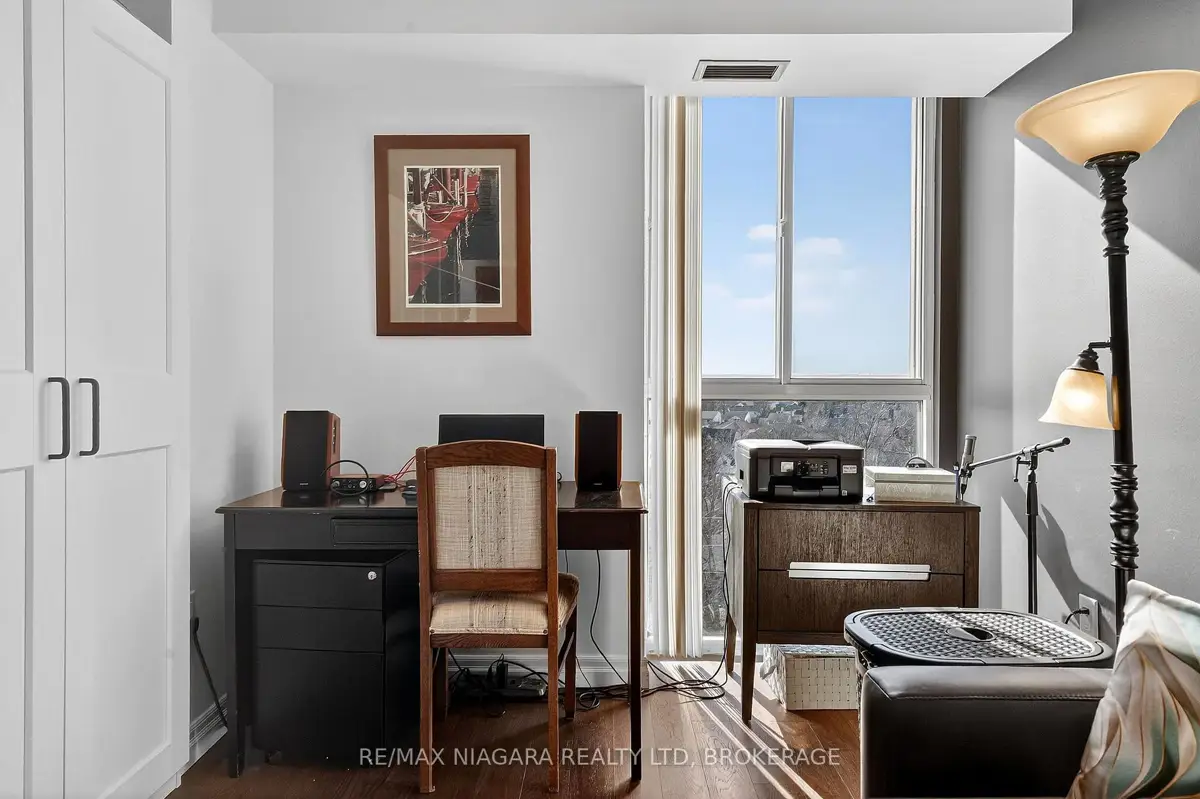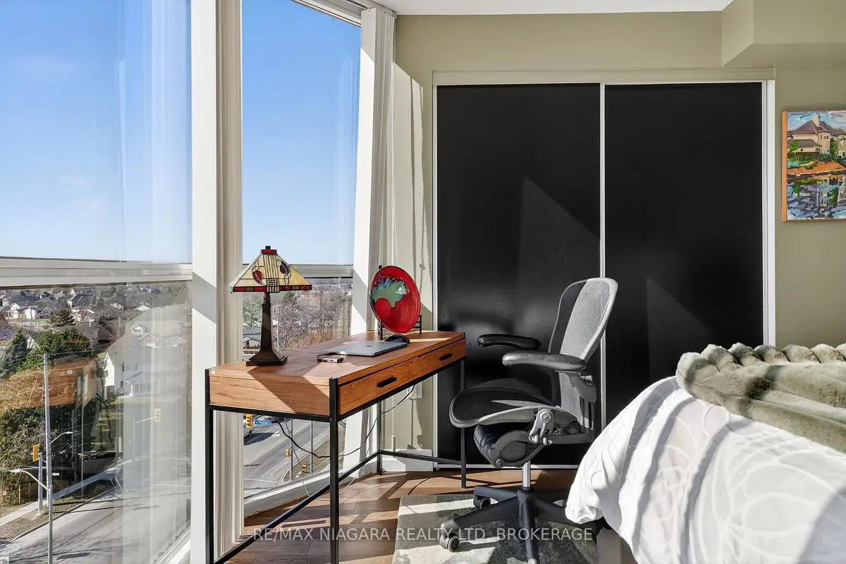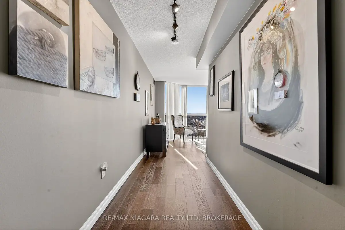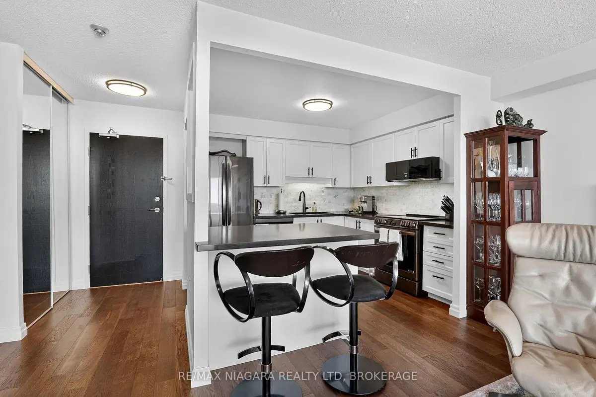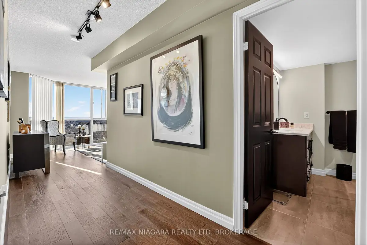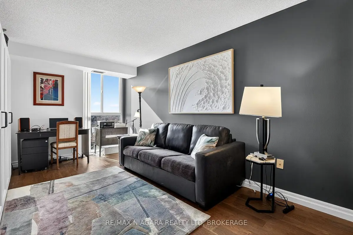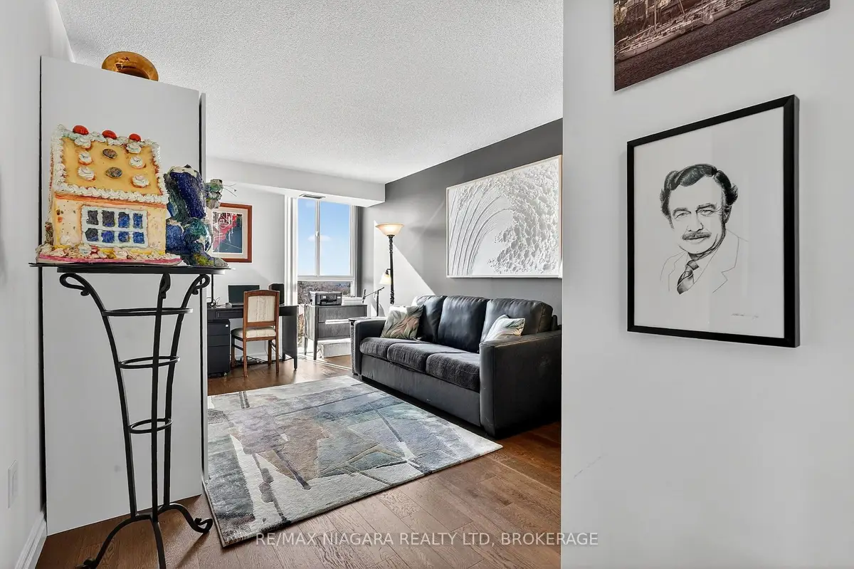 Welcome to Grenadier Place, move-in ready living in one of St. Catharines' most desirable neighbourhoods! This beautifully updated 2-bed, 2-bath condo has been thoughtfully renovated throughout, featuring fresh paint, modern flooring, updated bathrooms, stylish new light fixtures, and new appliances. Stunning views are framed by floor-to-ceiling windows, flooding the bright open-concept living and dining area with natural light. The sun-soaked solarium is the perfect spot to relax or create your own indoor garden retreat. The eat-in kitchen offers modern convenience, while the generous primary suite features a large ensuite bathroom and excellent closet space. In-suite laundry adds everyday ease. Residents enjoy an impressive amenity package including an indoor saltwater pool, hot tub, sauna, fitness centre, library, workshop, games and party rooms, BBQ area, and a guest suite for visitors. The unit also includes an owned underground parking space and storage locker. Condo fees include heat, hydro, water, air conditioning, cable TV, outdoor window maintenance and cleaning, snow removal, building insurance, property management, and private garbage removal. Ideally located close to medical centres, the hospital, schools, dining, shopping, and scenic trails along the shores of Lake Ontario. Quick access to the QEW and Hwy 406 makes commuting a breeze. Come experience carefree living in this well-managed, highly sought-after building.