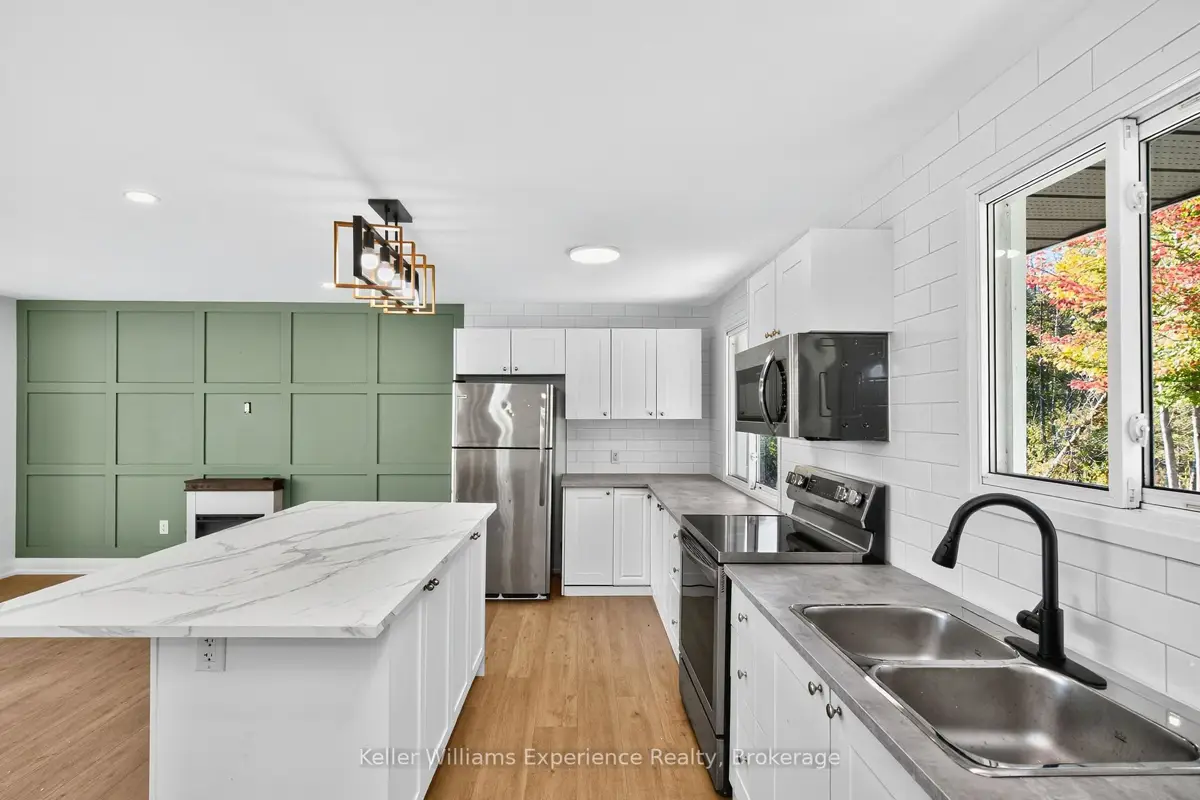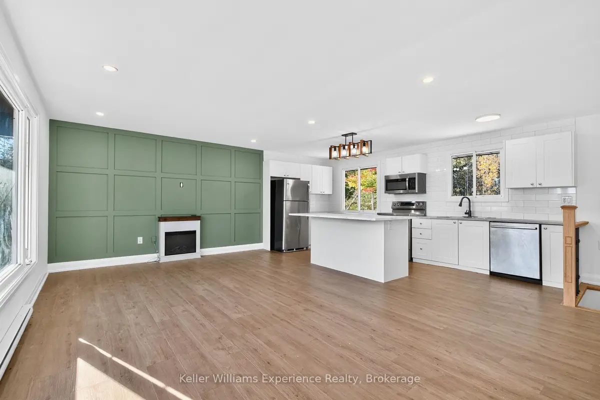 The time is now to live the good life in this beautifully renovated, tastefully updated, move-in-ready bungalow on 1.33 acres, with over 1700 square feet of living space. Located directly across from Georgian Bay with three bedrooms, two bathrooms, and a finished basement, this home is ideal for downsizers seeking peace or families looking to escape subdivision living and enjoy the space and lifestyle of rural life. Located across from the marina, this is a boater's dream. You'll love the bright kitchen with a breakfast bar, ample counter space, and generous cabinetry. The bright open-concept living and dining area features an electric fireplace and a walkout to a back deck overlooking the large, private, wooded property. The main floor offers three bedrooms and a four-piece bathroom, providing convenient one-level living. The finished basement includes a spacious rec room with natural light, an electric fireplace, a three-piece bathroom, and inside access to the garage. Additional features include a 200-amp electrical panel, a six-year-old roof. Conveniently located near local beaches, Awenda Provincial Park, schools, and just a short drive to Rooms History downtown Penetanguishene, Midland, shops, restaurants and Georgian Bay General hospital - you do not want to miss this turnkey opportunity!