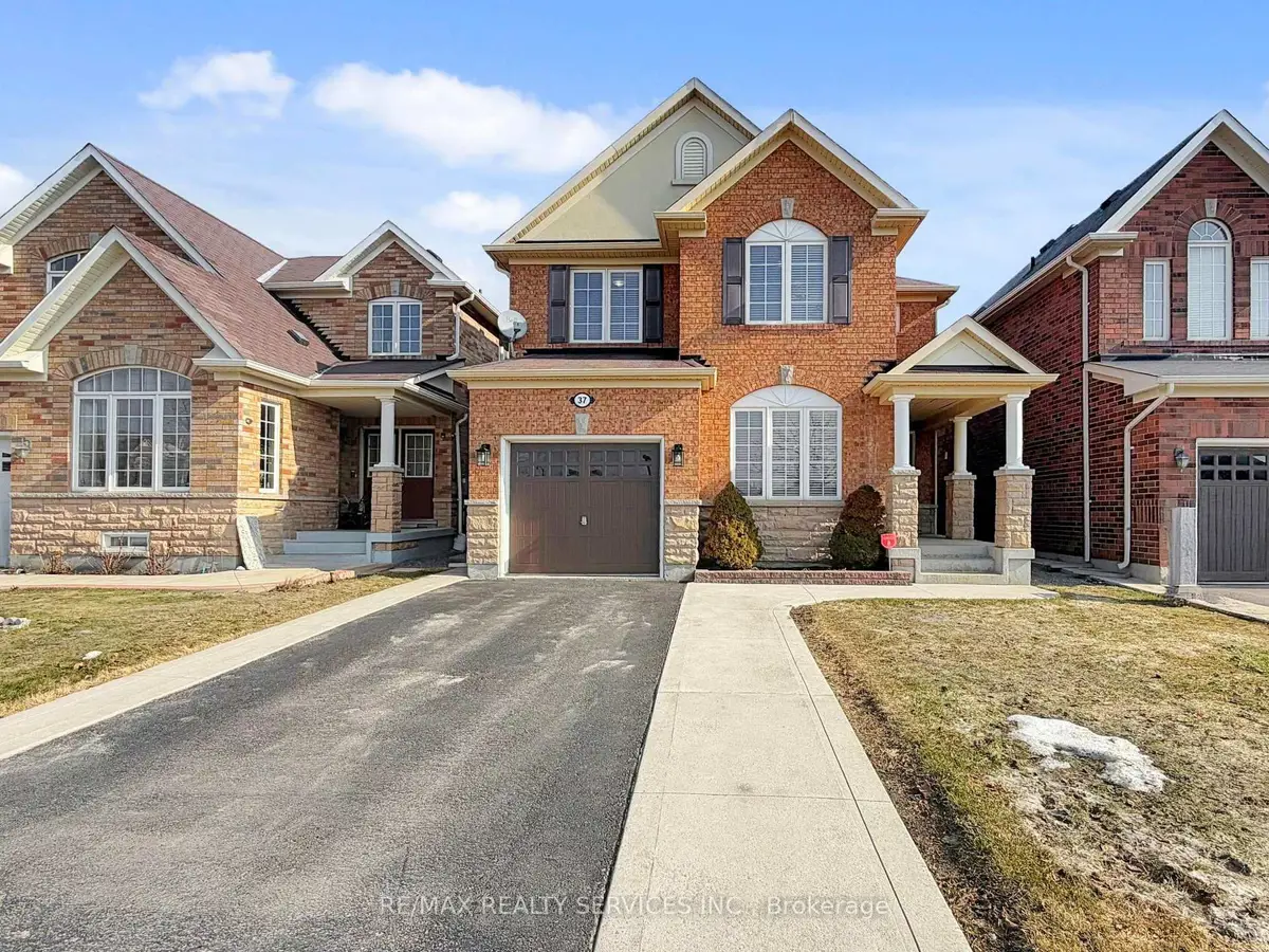 *Open House This Weekend 2-4PM* Move-In Ready! Welcome to 37 Bloom Drive in the highly sought-after Bram East community. From the moment you arrive, the charming front porch invites you to slow down, sit back, and enjoy the welcoming feel of this family-friendly neighbourhood. This beautiful detached home showcases a striking stone/brick exterior & a bright, sun-filled layout designed for both everyday living & memorable gatherings. The main floor offers an open-concept living & dining area along with a separate family room featuring gleaming hardwood floors & pot lights-an ideal space to unwind with family or host guests. At the heart of the home is the updated eat-in kitchen, complete with quartz countertops, a stylish backsplash, stainless steel appliances including a gas range, a breakfast bar & a spacious dining area overlooking the backyard. Step outside to the fully fenced yard, perfect for summer barbecues, kids at play, or simply relaxing after a long day. A convenient 2-piece powder room completes the main level. Upstairs, you'll find 4 generously sized bedrooms finished with quality laminate flooring & two full bathrooms. The primary suite offers his-and-her closets and a private 4-piece ensuite, creating a comfortable retreat at the end of the day. An open study nook at the top of the stairs provides the perfect spot for homework, reading, or a home office. The unfinished basement with a separate side entrance presents a great opportunity to customize the space to suit your needs. Additional highlights include a widened driveway that fits up to 4 vehicles & a 1 car garage with direct access to the home. Located in a fantastic family-oriented neighbourhood with a park directly across the street and within walking distance to Gore Meadows Community Centre, schools, trails, medical facilities, temples, transit & more. Easy access to Highways 427 & 407 makes commuting convenient. A wonderful place to call home in one of Bram East's most vibrant communities.