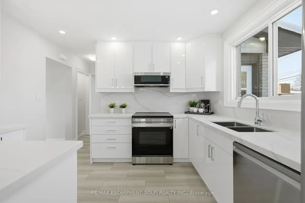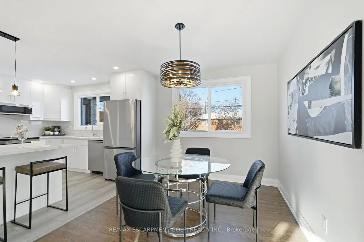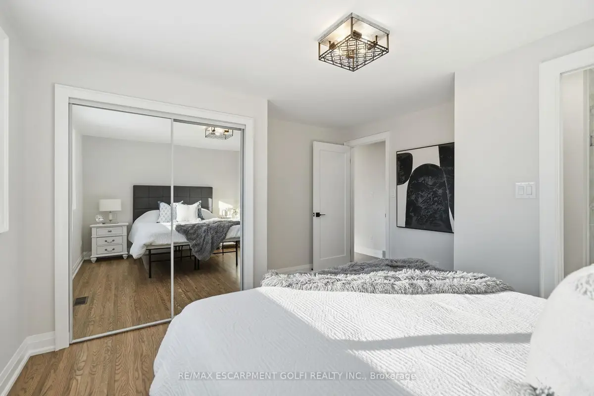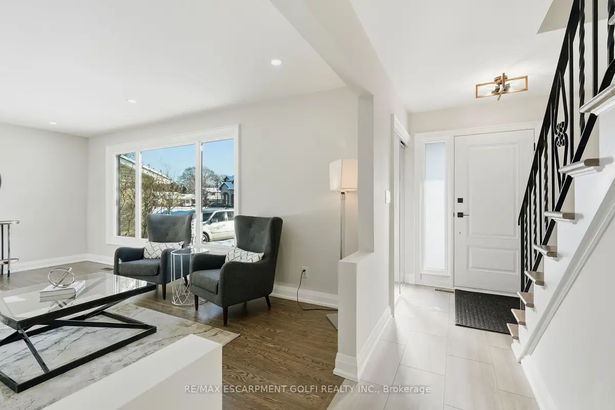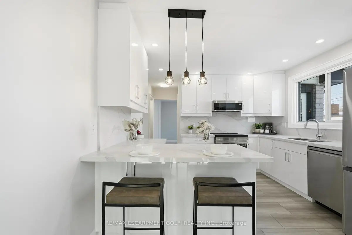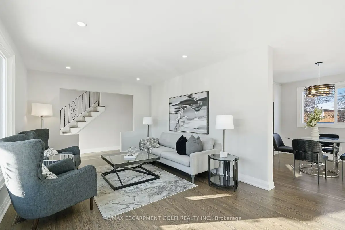 This stunning 2 storey home offers exceptional curb appeal and has been professionally renovated from top to bottom. This elegant and timeless home defines turn-key living, offering 5 well sized bedrooms, 4 new bathrooms and over 2500 square feet of finished living space. Showcasing a refreshed exterior highlighted by brand-new garage doors, exterior doors, & exterior pot lights. As you step inside, the expansive living room is flooded with natural light from large windows and features sanded and stained hardwood floors through-out, new trim, modern light fixtures, pot lights, and a seamless open-concept dining area. The brand-new kitchen offers quartz countertops, custom soft-close cabinetry, all-new high-end appliances, and a beautifully designed open layout perfect for both daily living and entertaining. Attention to detail is evident throughout this home, featuring new carpet runners, four well sized bedrooms and two fully renovated bathrooms. The finished basement adds refined living space ideal for recreation, guest accommodation, or a home office, featuring a brand new bathroom and a generous utility room with a brand-new high-end washer and dryer and workbench. The Large backyard offers plenty of space for outdoor living, complete with a brand-new deck and railings. Beyond the visible upgrades, the home offers complete peace of mind with updated plumbing, updated electrical with ESA approval, new attic insulation, a new high-efficiency furnace, and a high-efficiency hot water heater, completing this extensively upgraded home. Set within a sought-after neighbourhood close to amenities, grocery stores, top-rated schools, and public transit, this extensively upgraded 2025 residence offers move-in-ready living with exceptional quality, comfort, and modern appeal. Some images are virtually staged.