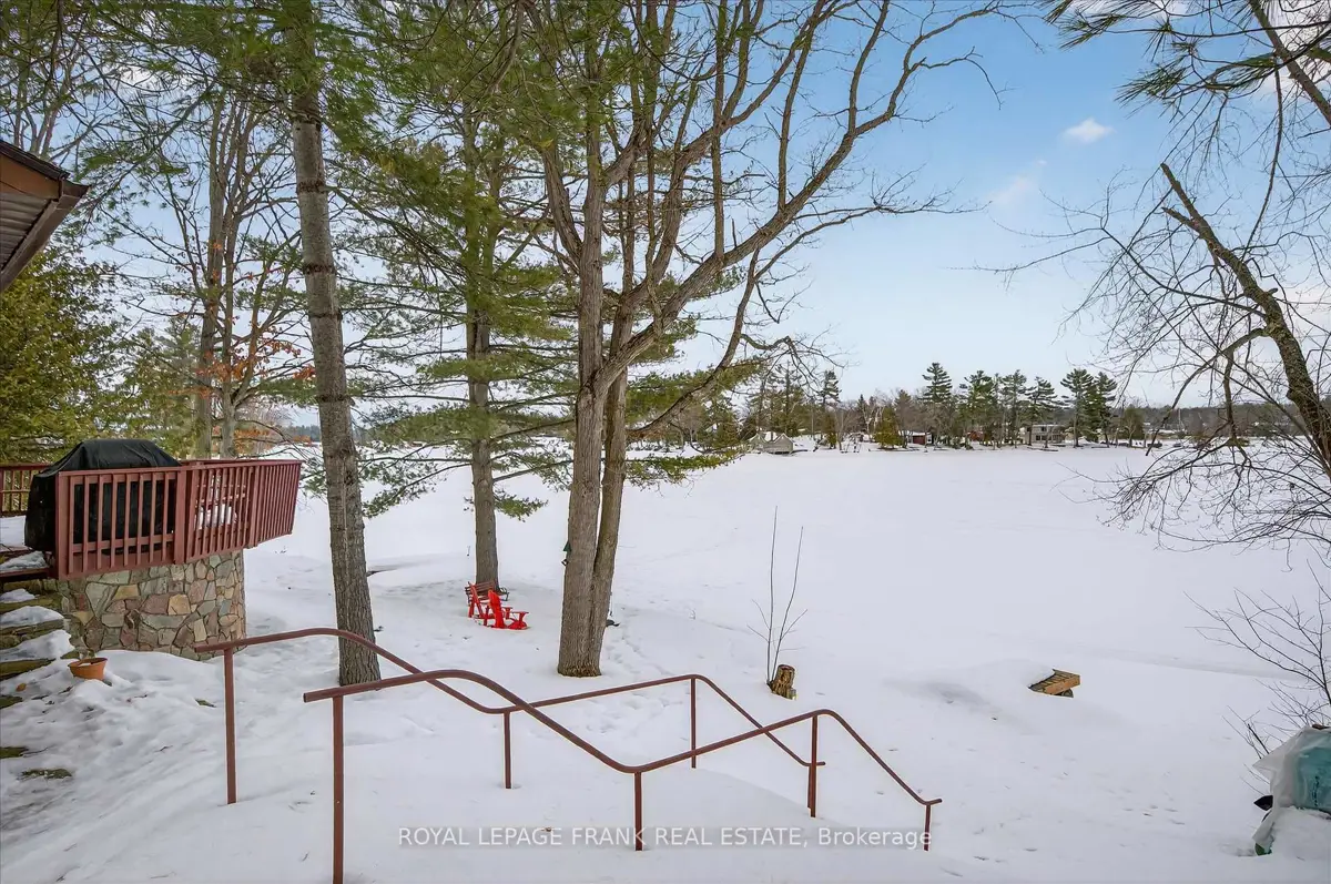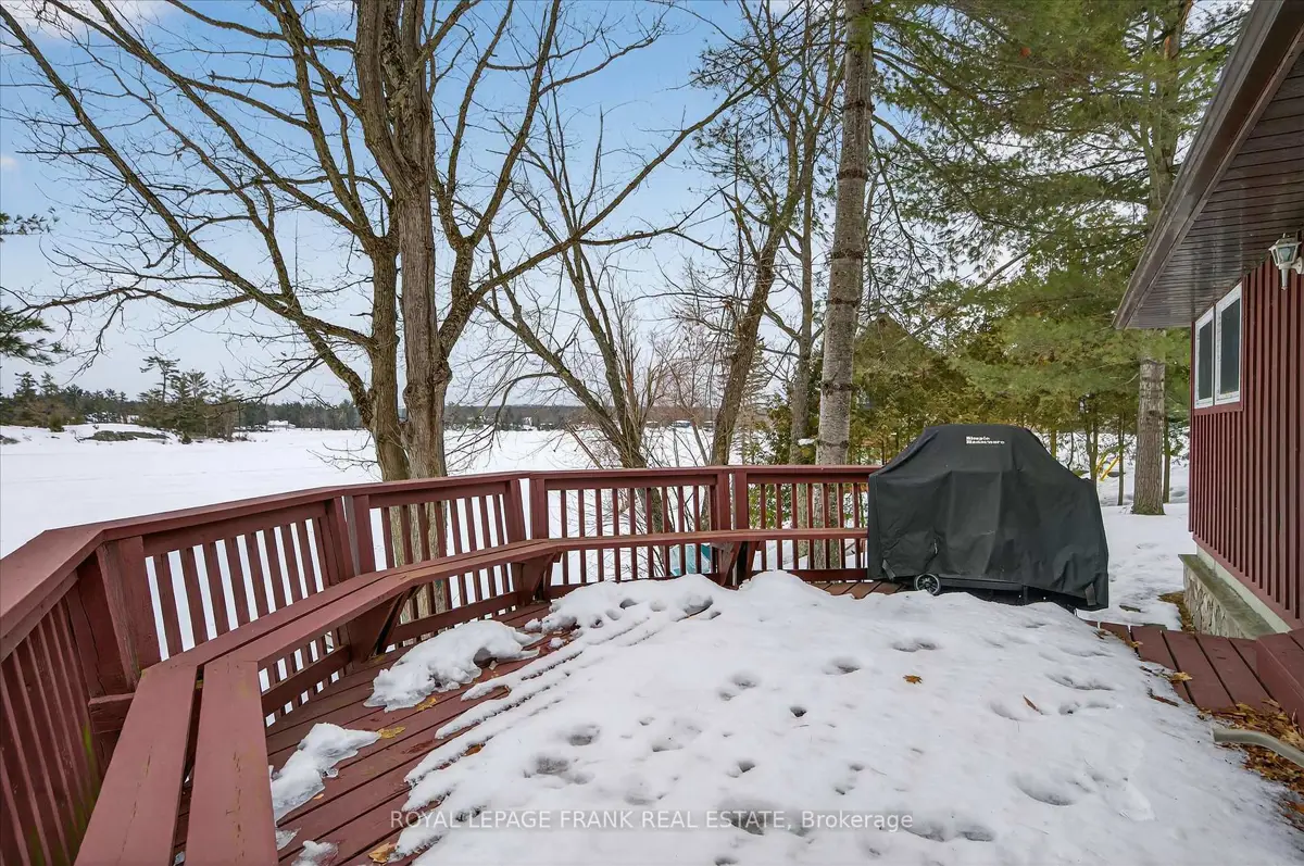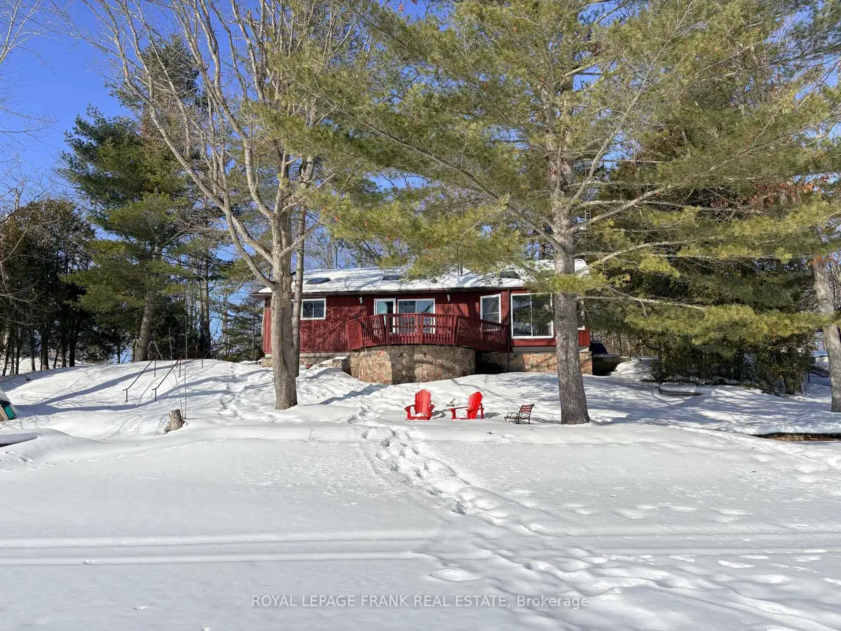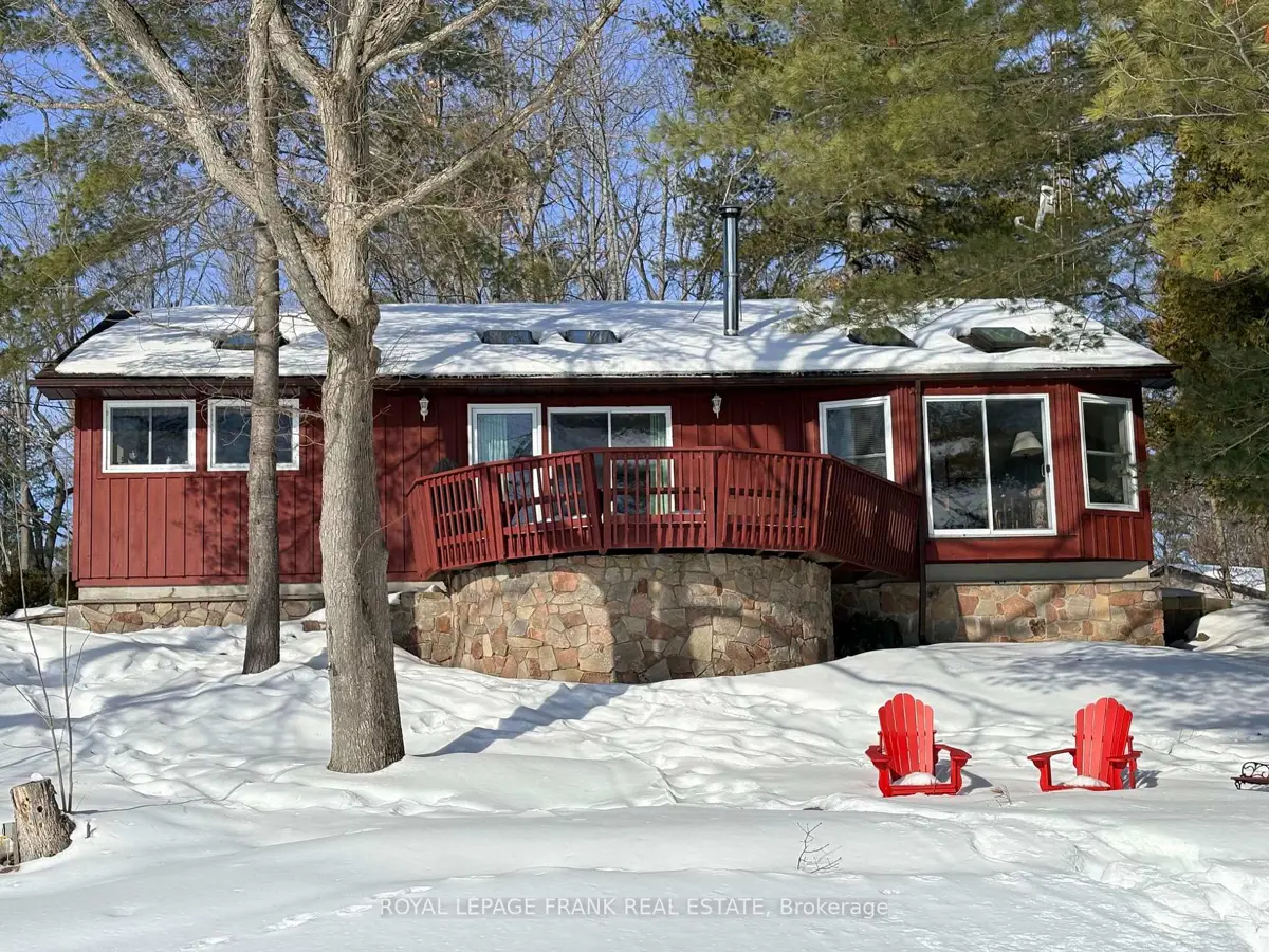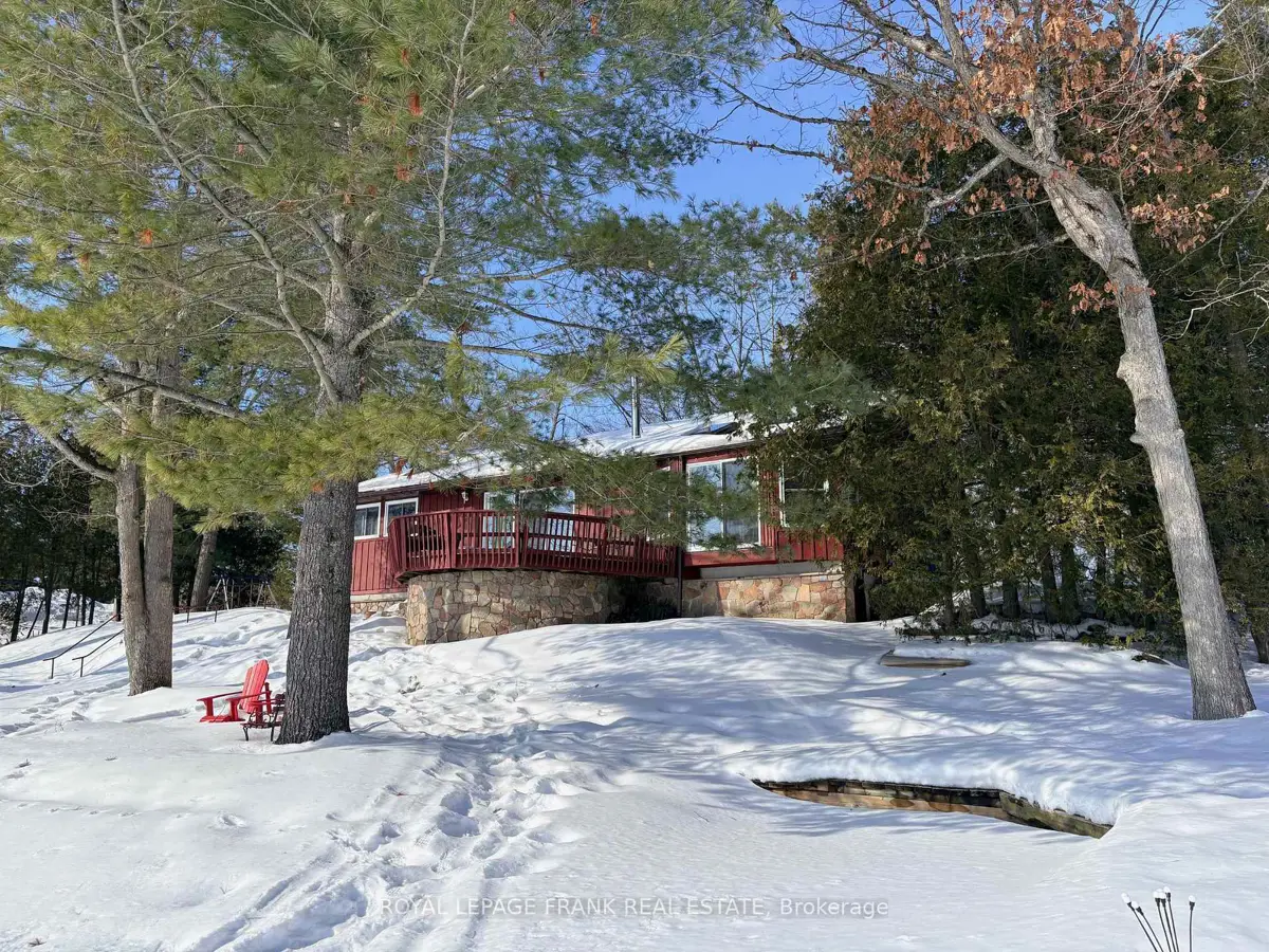 Stoney Lake. Year-round bungalow style lake house. Gorgeous open lake and island view with sunrise exposure. Good swimming frontage - level, gently sloping property with mature pine trees. This property also has frontage on a quiet back bay which is perfect for children or adults to explore. The home features 3 bedrooms, an open concept design with walkout to large lakeside deck, wood burning fireplace, 2 bathrooms, laundry - mud room, forced air heat and central air conditioning. Located on a privately maintained, year-round road - with both year-round and seasonal neighbours. Upper- Stoney location with a "Crown Land" island in sight and a short paddle away. Well maintained home. Enjoy all four seasons on beautiful Stoney Lake.