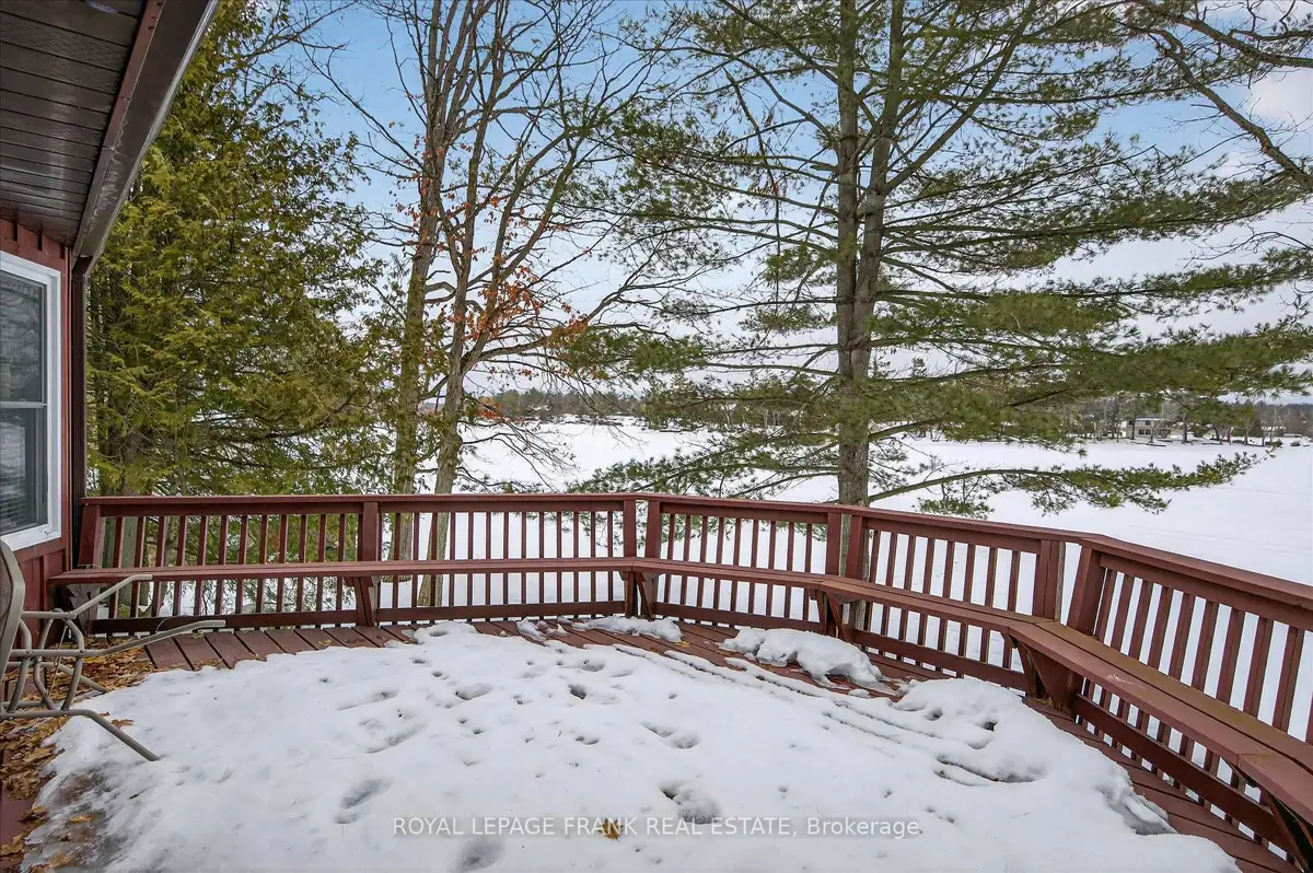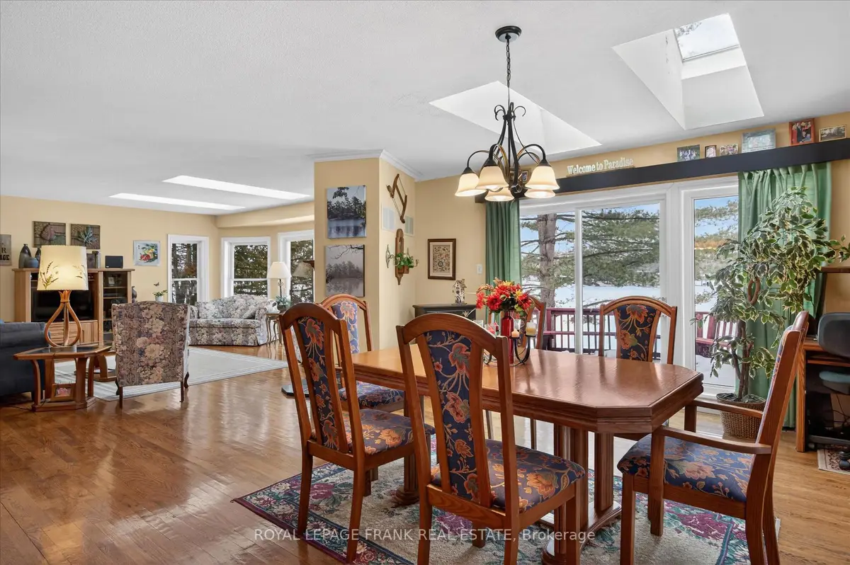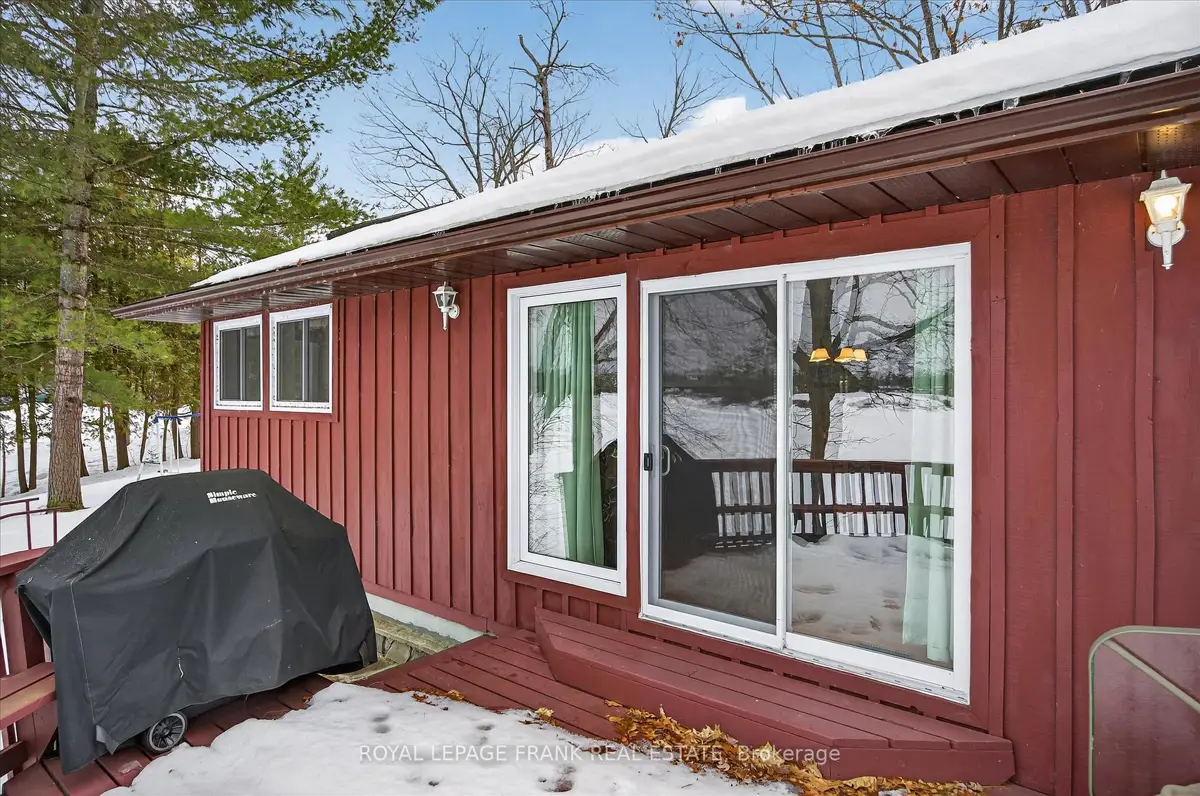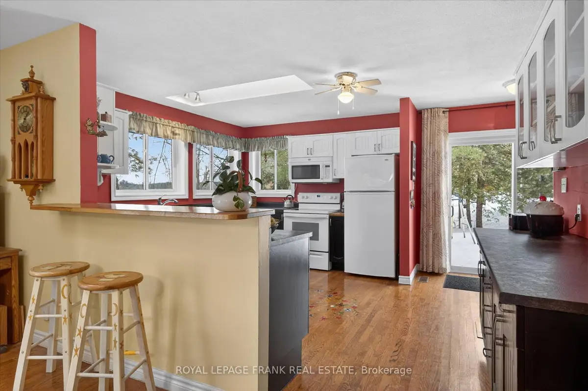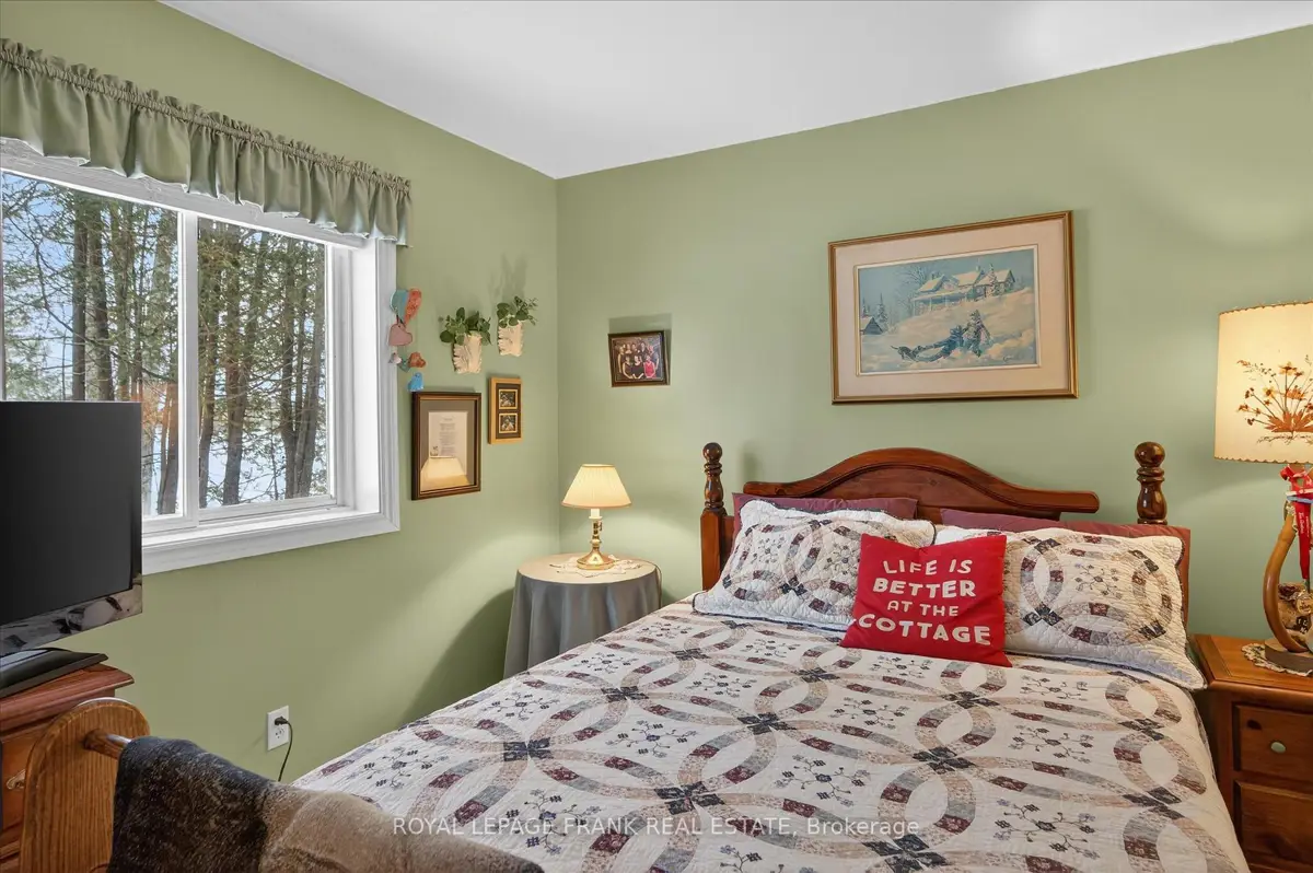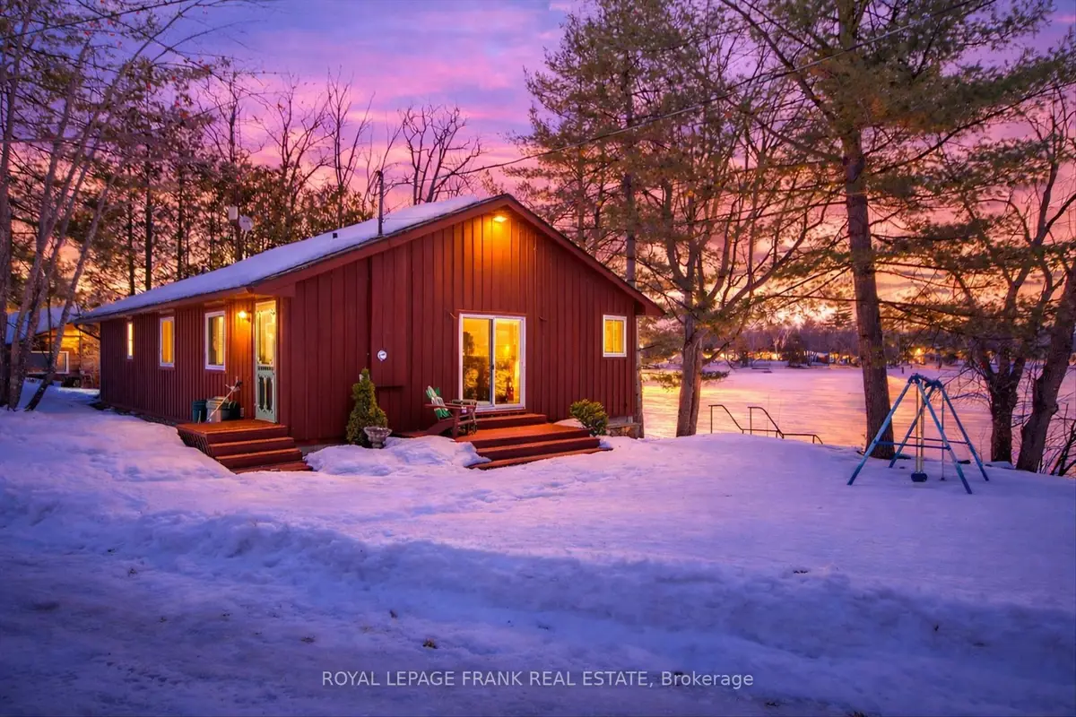 Stoney Lake. Year-round bungalow style lake house. Gorgeous open lake and island view with sunrise exposure. Good swimming frontage - level, gently sloping property with mature pine trees. This property also has frontage on a quiet back bay which is perfect for children or adults to explore. The home features 3 bedrooms, an open concept design with walkout to large lakeside deck, wood burning fireplace, 2 bathrooms, laundry - mud room, forced air heat and central air conditioning. Located on a privately maintained, year-round road - with both year-round and seasonal neighbours. Upper- Stoney location with a "Crown Land" island in sight and a short paddle away. Well maintained home. Enjoy all four seasons on beautiful Stoney Lake.