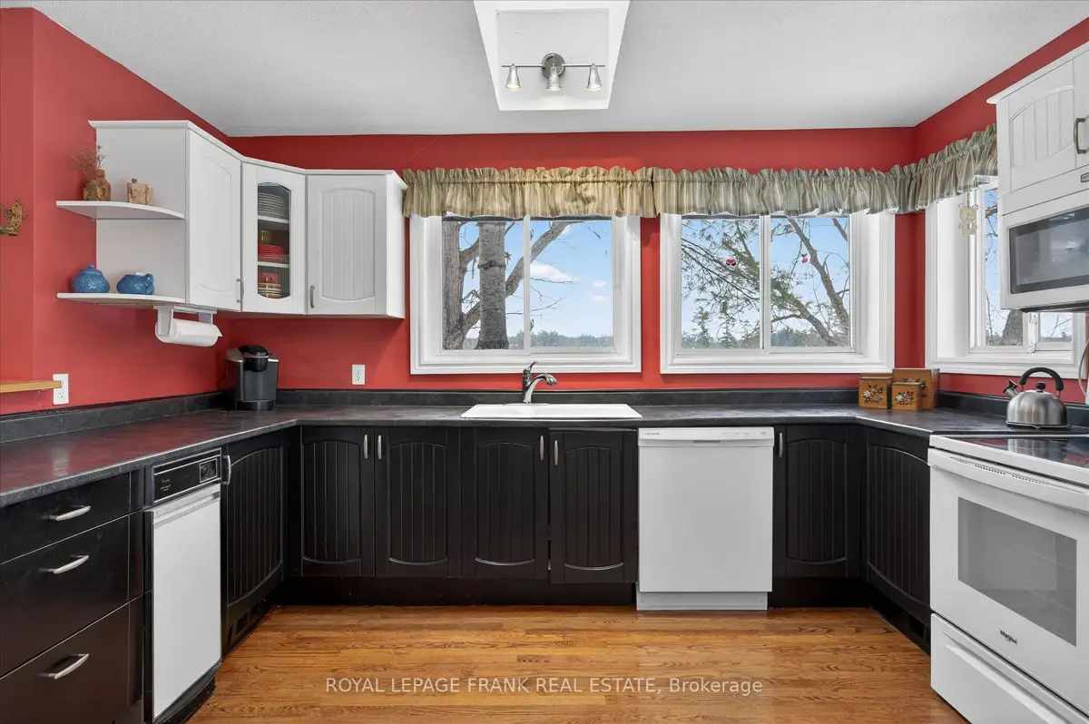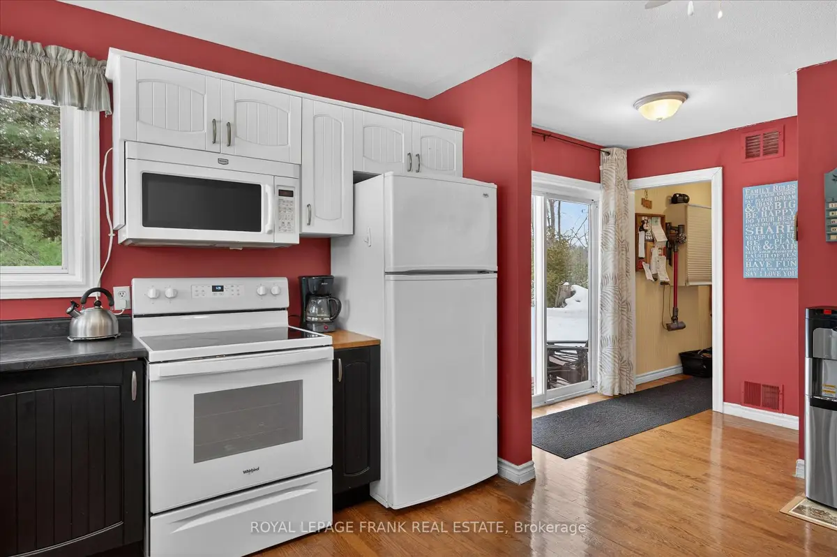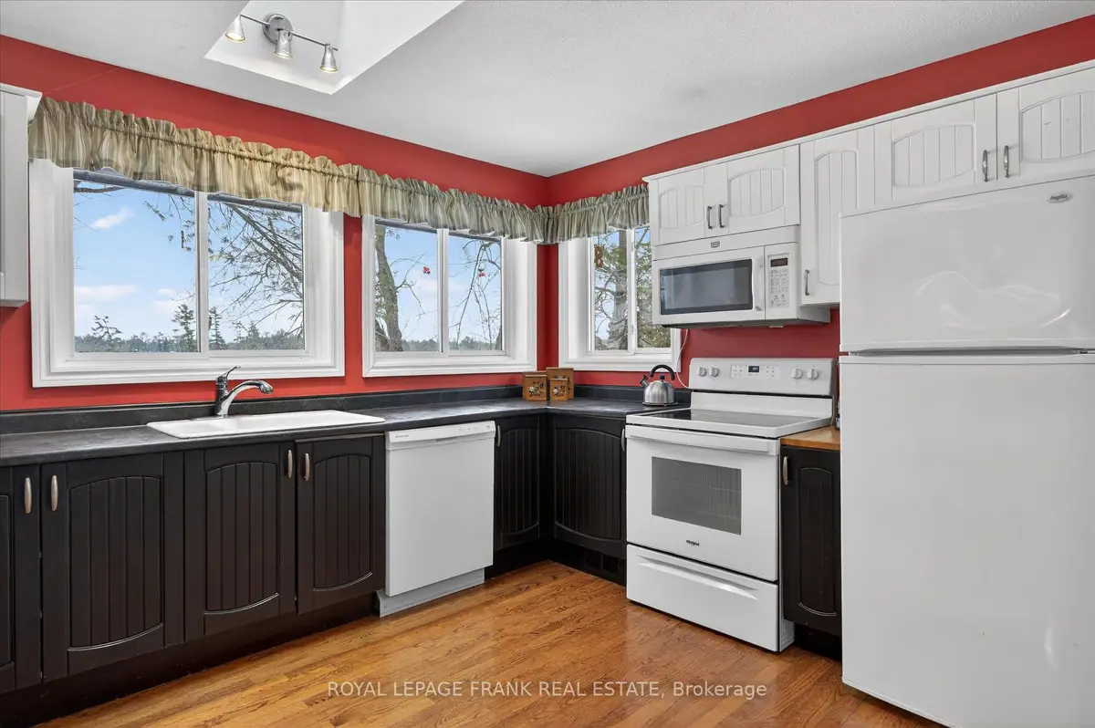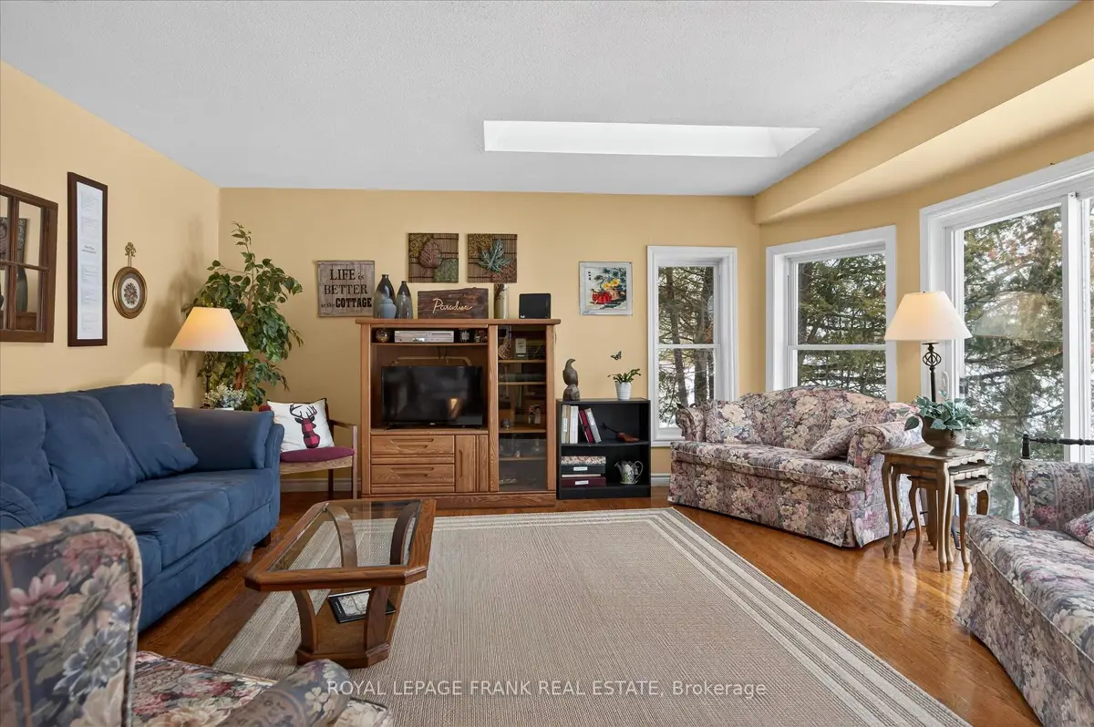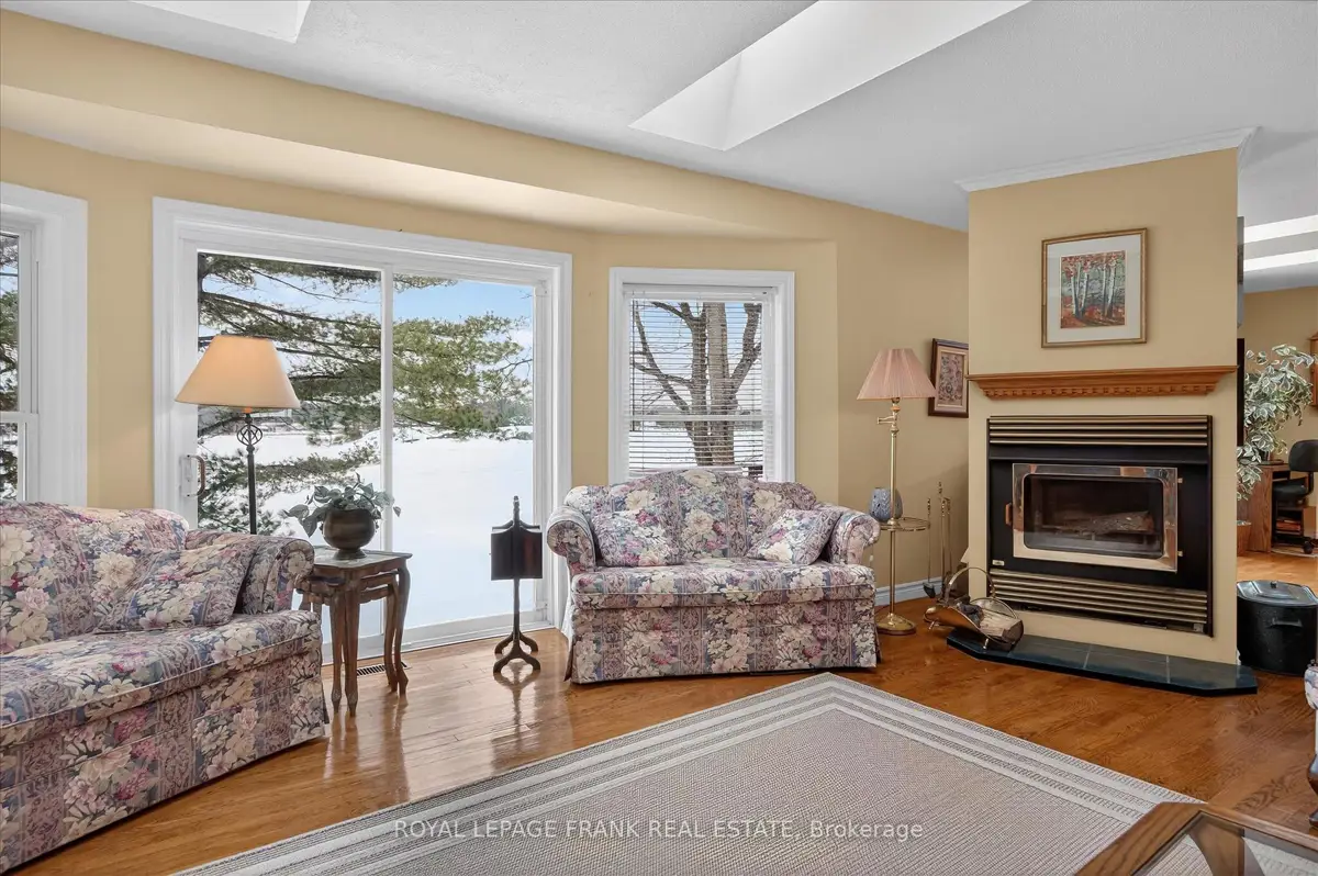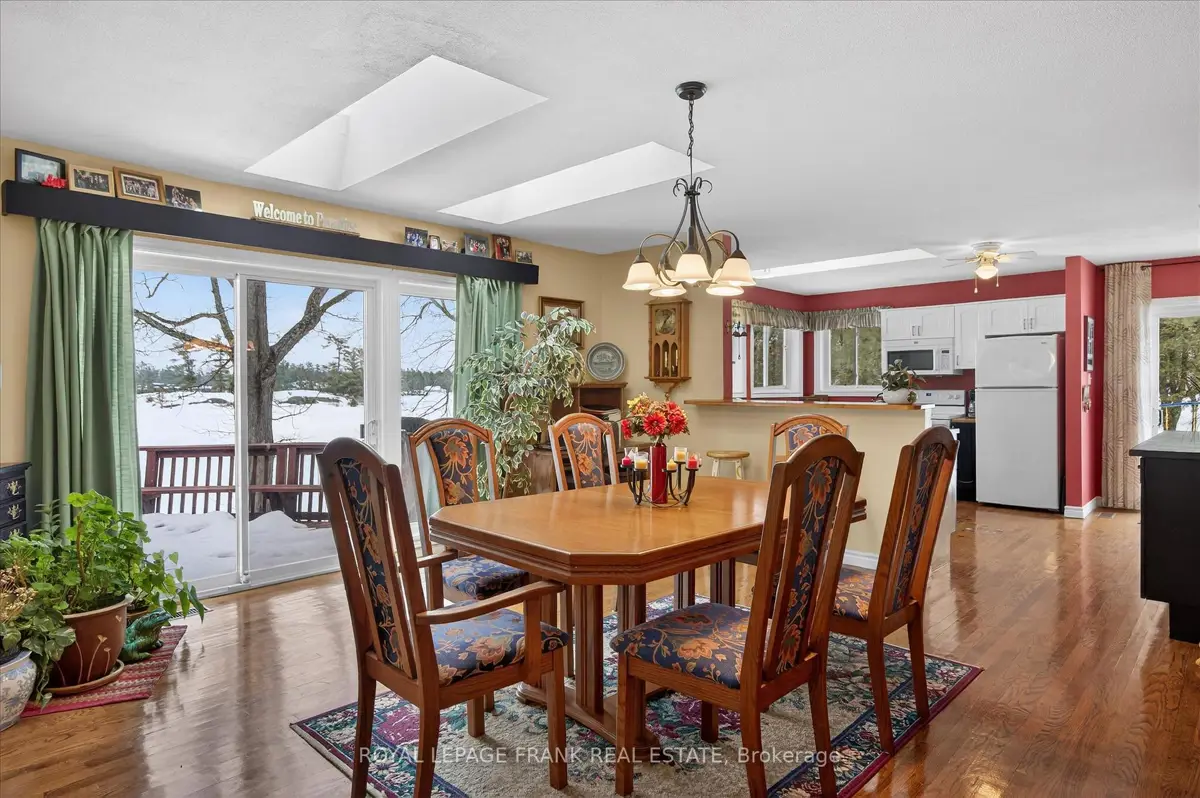 Stoney Lake. Year-round bungalow style lake house. Gorgeous open lake and island view with sunrise exposure. Good swimming frontage - level, gently sloping property with mature pine trees. This property also has frontage on a quiet back bay which is perfect for children or adults to explore. The home features 3 bedrooms, an open concept design with walkout to large lakeside deck, wood burning fireplace, 2 bathrooms, laundry - mud room, forced air heat and central air conditioning. Located on a privately maintained, year-round road - with both year-round and seasonal neighbours. Upper- Stoney location with a "Crown Land" island in sight and a short paddle away. Well maintained home. Enjoy all four seasons on beautiful Stoney Lake.