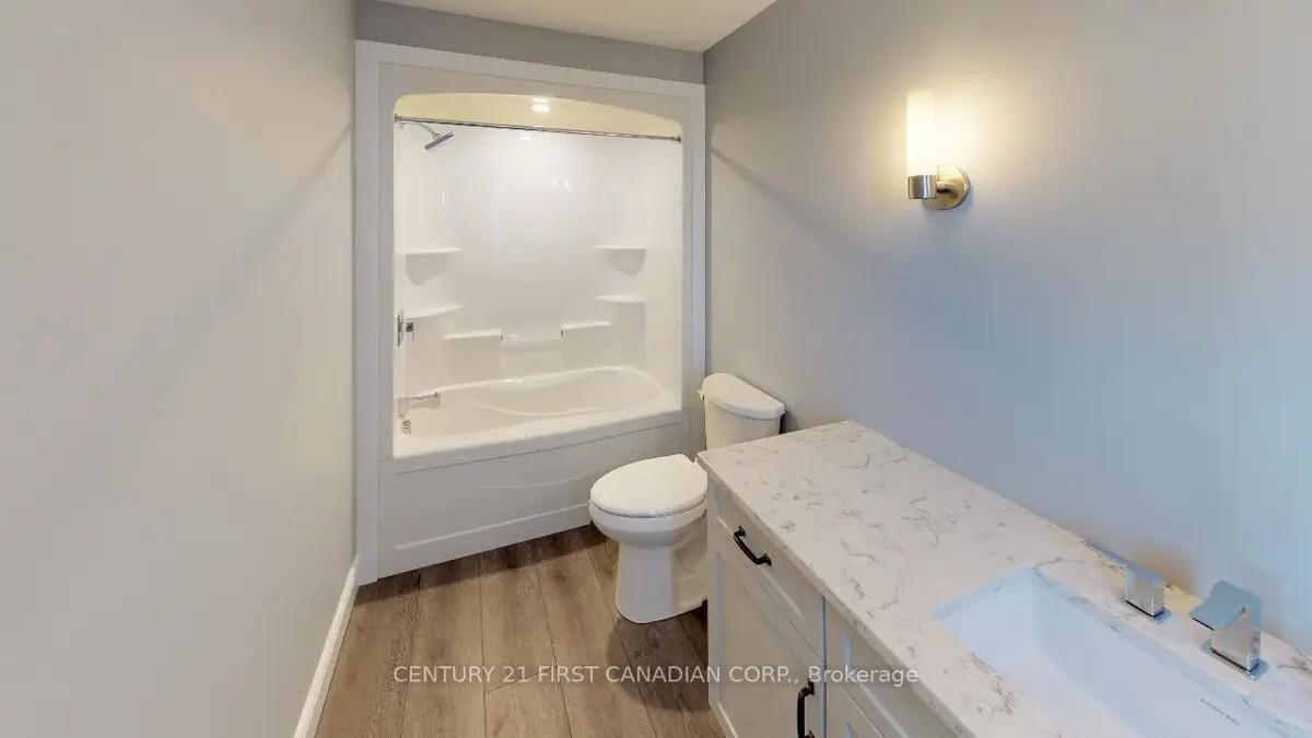 TO BE BUILT - Welcome to the Cornerstone, a thoughtfully designed 2,090 sq by VanderMolen Homes. ft. two-storey home offering modern open-concept living. The main floor features a bright kitchen with quartz countertops, and a spacious pantry, seamlessly connected to the dinette and great room. A gas fireplace upgrade option is available to enhance the great room with additional warmth and character. Patio doors off the dinette provide convenient access to the backyard. An office is located just off the main entrance-perfect for working from home. Finishing off the main level is a laundry/mudroom, a 2-piece bathroom, and direct access to the attached two-car garage. Upstairs, you'll find a spacious primary bedroom with a 3-piece ensuite and large walk-in closet, along with three additional bedrooms and a 4-piece bathroom. The unfinished basement includes a rough-in for a future 3-piece bathroom, offering potential for additional living space. Exterior features include a concrete driveway and walkways, plus a fully sodded lot. Enjoy the convenience of nearby amenities including grocery, hardware store, gas station, restaurants, parks, and shopping. Ausable Bluffs is only 25 minutes away from north London, 20 minutes to east of Strathroy, and 30 minutes to the beautiful shores of Lake Huron. Please note that virtual tour and interior photos are from a previous model and some finishes and/or upgrades shown may not be included in standard specs.